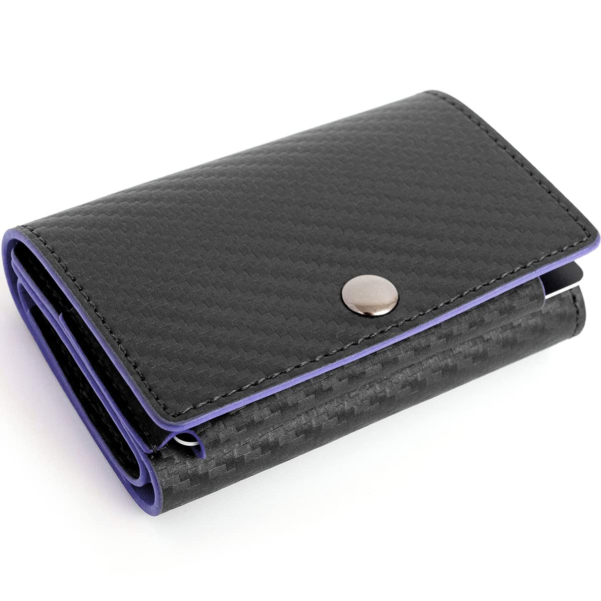 【数量限定】[Dom Teporna] 小さい財布 三つ折り財布 ミニ財布 メンズ 牛革 カーボンレザー ミニマリスト ウォレット カードケース 3枚収納 お札入れ 小銭入れあり ブラック(インナーブルー) | libertyislan
