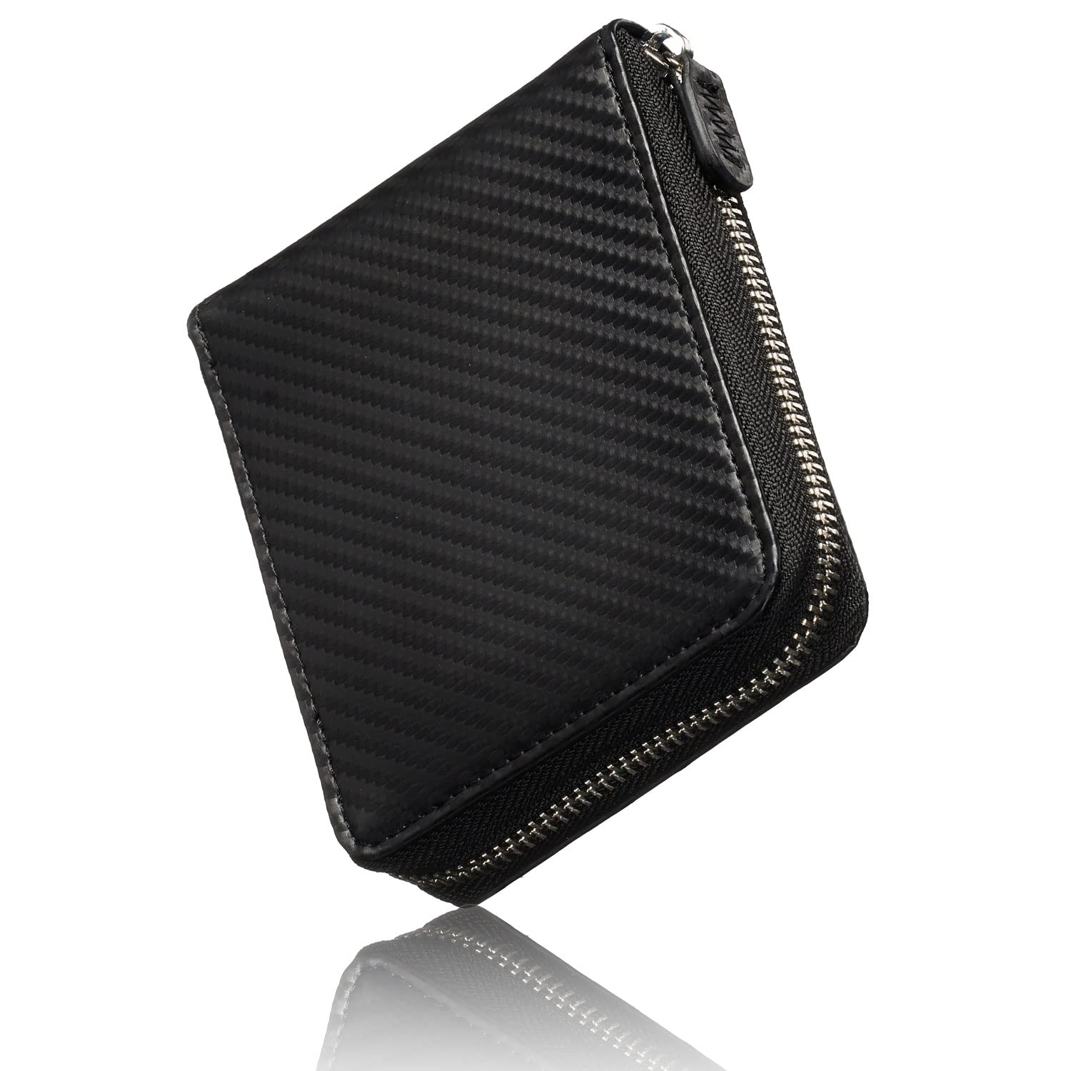 【2022最新】[VOICE] ヴォイス メンズ カーボンレザー 二つ折り 財布 『技あり』厚くならない ラウンドファスナー 使いやすい BOX型小銭入 プレゼント 用 ギフト 箱入り (Black/Blue) | libertyislan