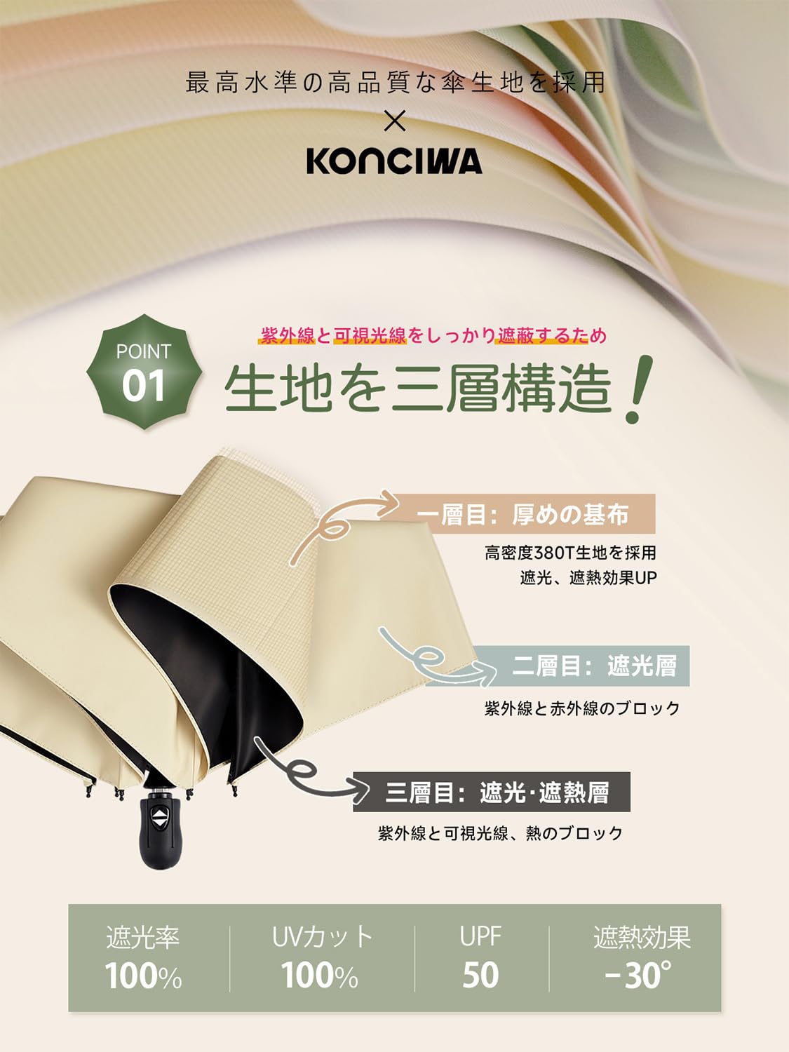 konciwa【 5秒でたためる傘】形状記憶 日傘 UVカット率 100% 晴雨兼用 自動開閉 完全遮光 遮熱 折りたたみ傘 軽量 コンパクト設計 おしゃれ 折り畳み傘 便利な日傘 撥水速乾 高耐久 耐強風 携帯便利 母の日 父の日カラーバリエーション豊富