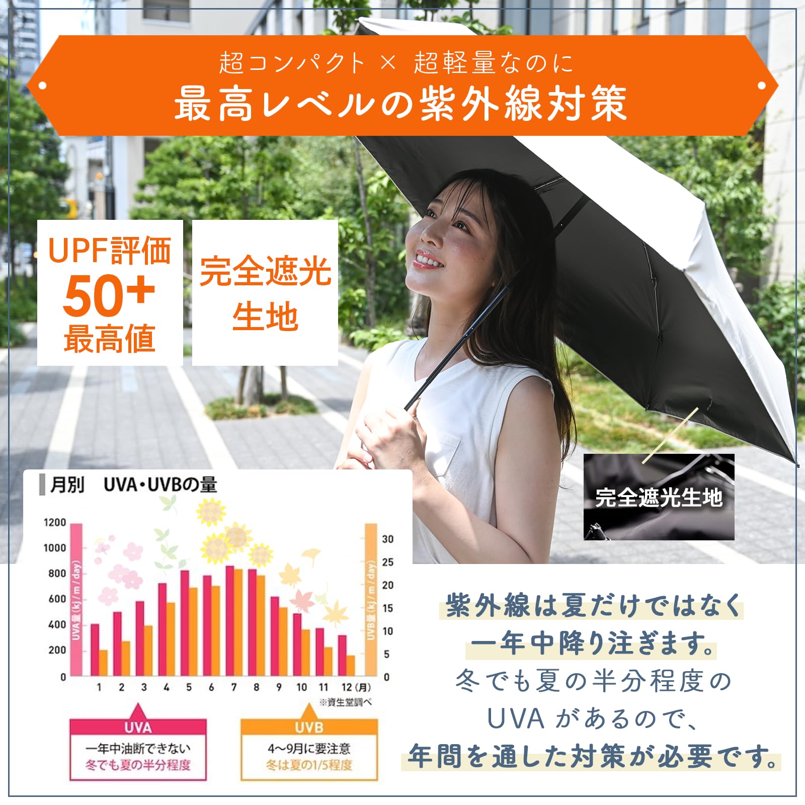 ️【晴雨兼用】超撥水生地のためもちろん雨天時も大活躍。急な雨対策にいつでもカバンに入れておけます。
