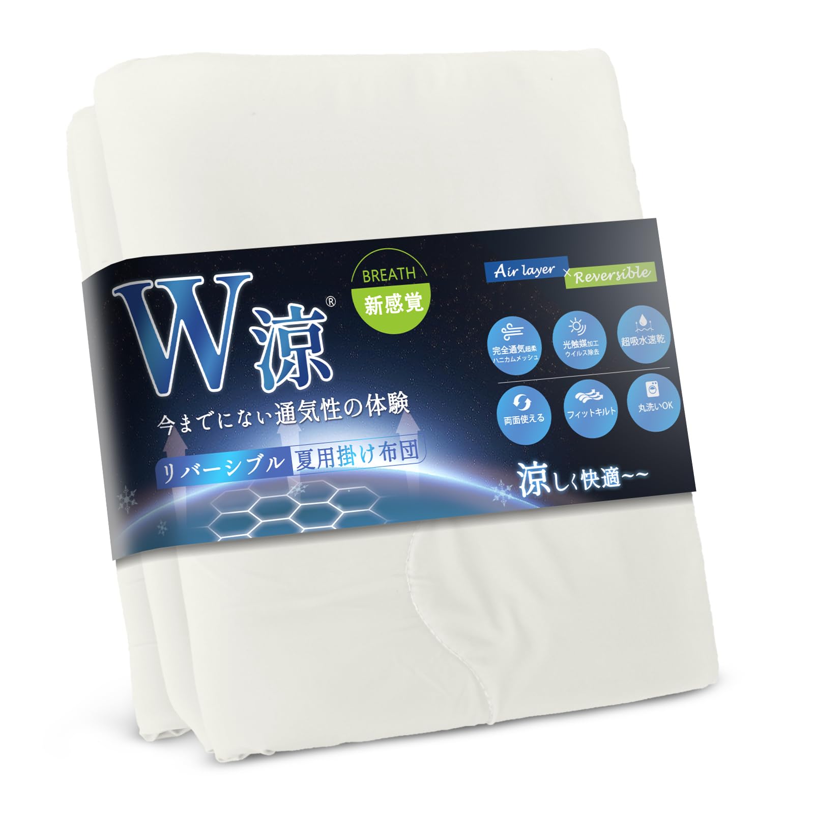 SunshineLife【W涼・通気新感覚】 夏用掛け布団 掛け布団 シングル 両面冷感 Q-MAX0.46 ハニカムメッシュ入り 超通気性 光触媒制菌・消臭加工 蒸れない サラサラ 肌掛け布団 かけ布団 ひんやり さっぱり キルトケット フィットキルト 軽量 吸湿速乾 肌布団 洗える 日本企画 白練 140x200cm