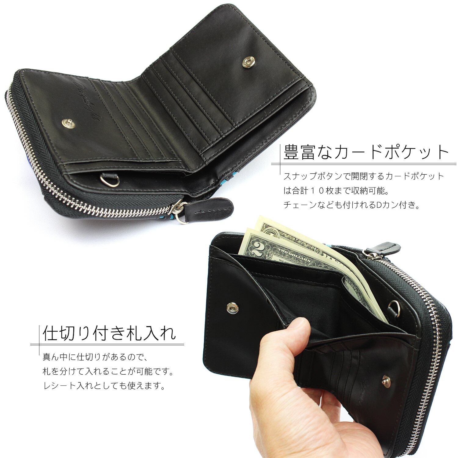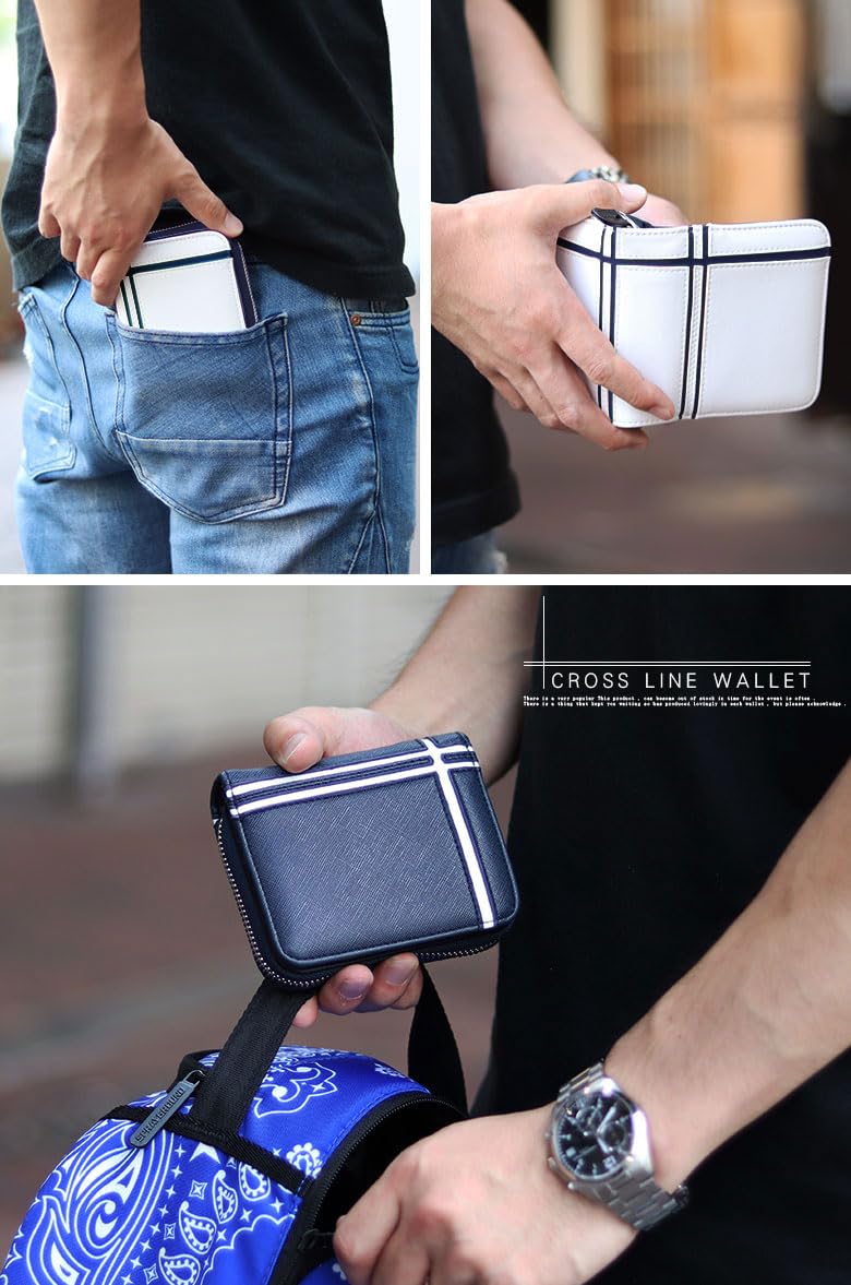 [デイライト] 財布 メンズ 二つ折り財布 PUレザー Wライン ラウンドファスナー コンパクト dl-1042 ブラック/ブルー