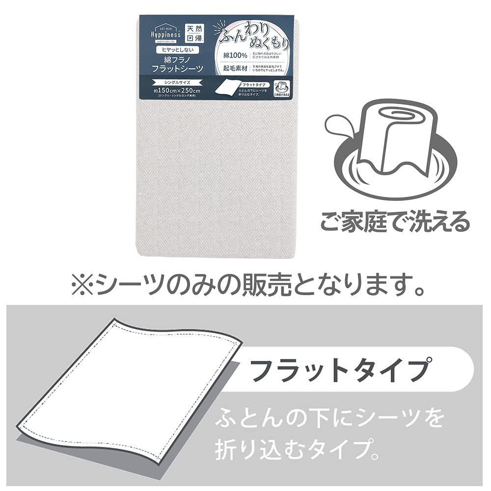 メリーナイト(Merry Night) シーツ フラットシーツ 起毛 ヘリンボーン柄 「フィスク」 グレー 敷布団用 シングル 約150×250cm 綿100% フラノ生地 ふんわり ぬくもり ヒヤっとしない 肌ざわり 秋冬寝具 洗える HP72007-05