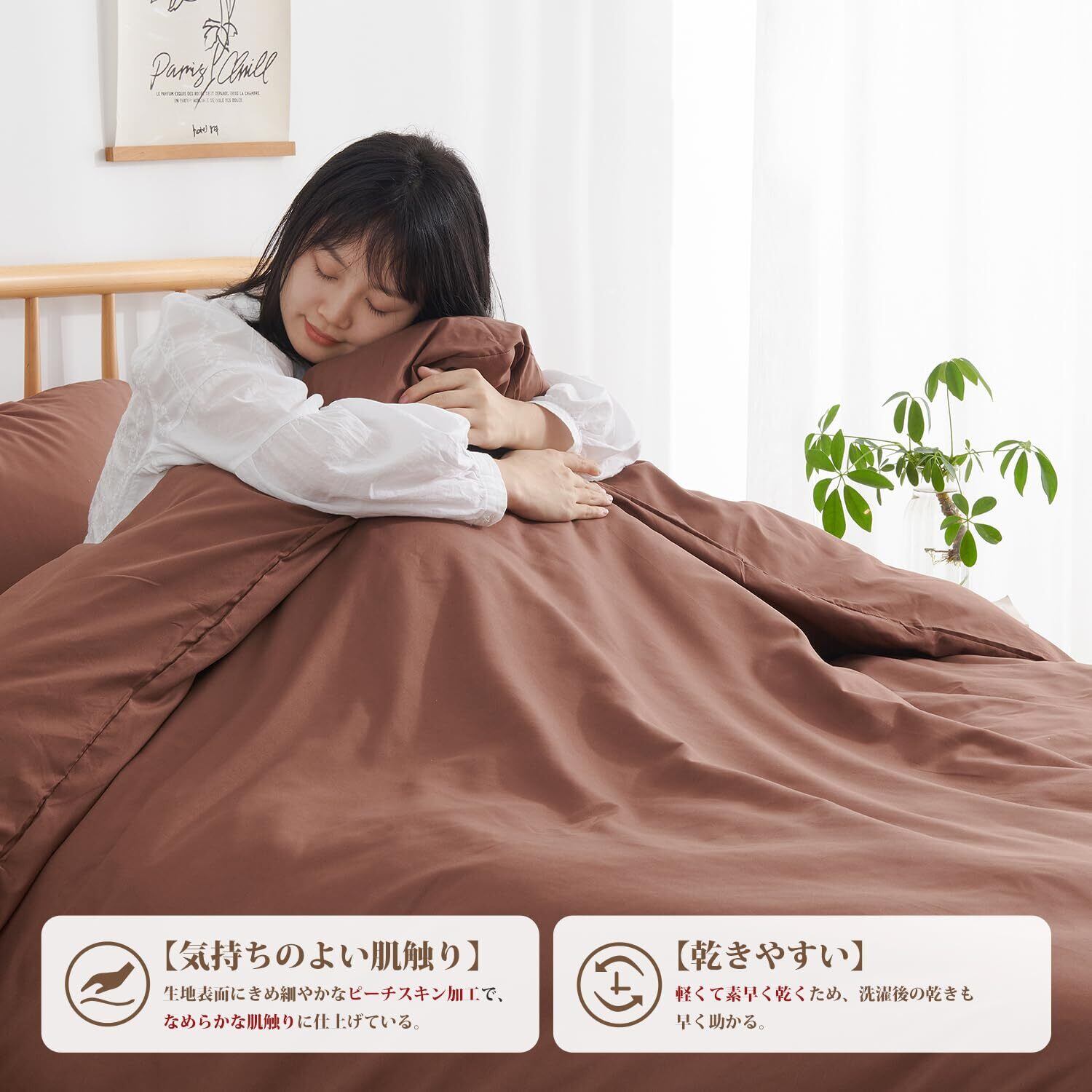 【特価商品】【Amazon.co.jp 限定】クモリ(Kumori) 寝具カバーセット 布団カバーセット 布団カバー シーツ 洋式ベッド・和式布団兼用 掛け布団カバー ボックスシーツ 枕カバー 洗い替え速乾タイプ ピーチスキン加工 セミダブル・4点セット ブラウン | libertyislan