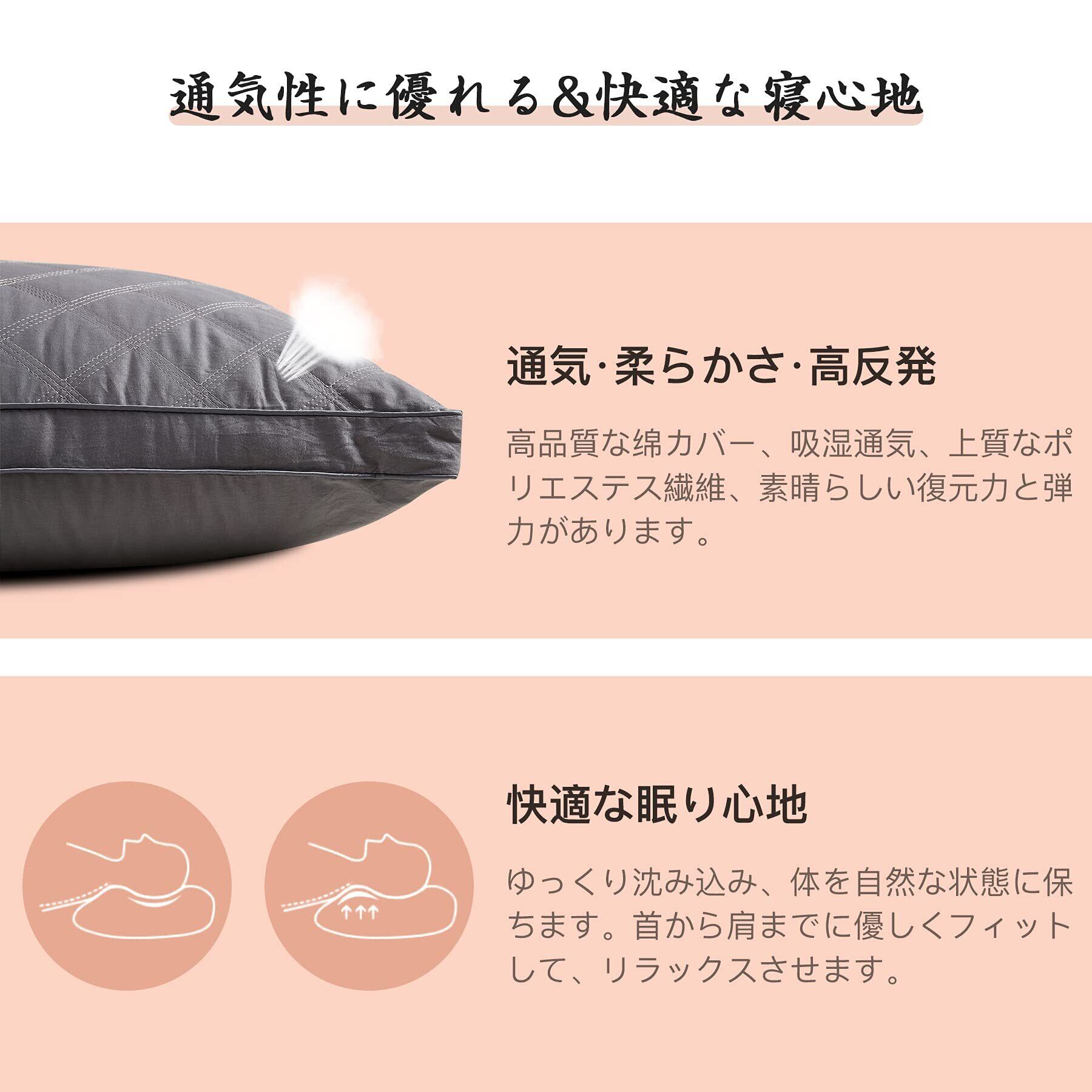 【立体構造】柔らかさと弾力性の両方を兼ね備え、ボリューム感があり、羽毛のように叩けばふわーっと飛 び散る性質をもっています。 どんなに寝返りをしても、しなやかさを保ちながら頭と首を安定させます。