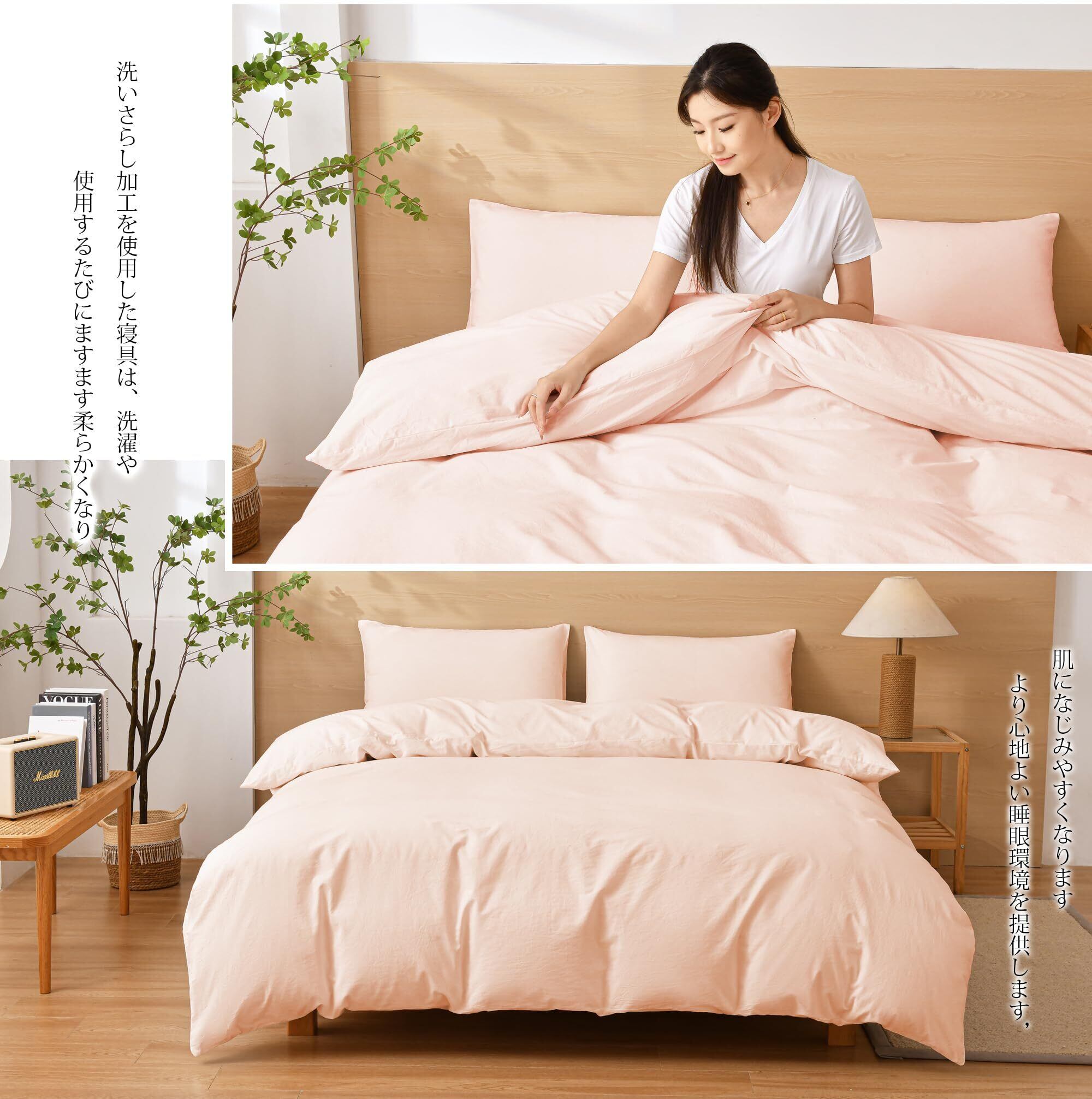 【2022最新】AYO 寝具カバーセット 布団カバーセット 洗いざらし シワ加工 水洗い やわらか (掛け布団カバー ボックスシーツ 枕カバー)吸水速乾 丸洗いOK 肌に優しい 無地 シンプル オールシーズン(シングル・3点セット ピンク) | libertyislan