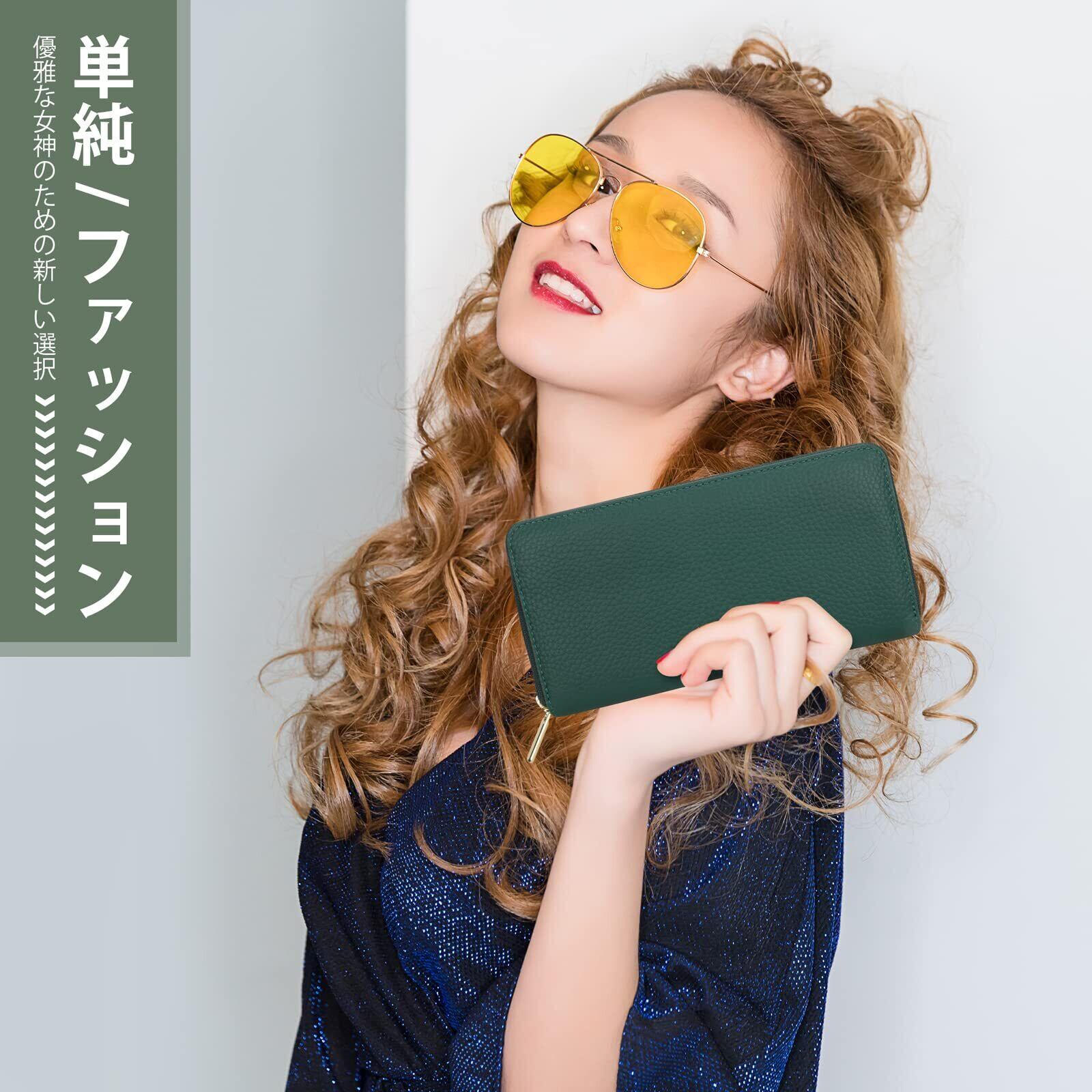 [DCLKO] 2024年 長財布 レディース 財布 本革 牛革 多機能財布 YKKファスナー カード22枚 長 財布 大容量 本革 長サイフ スキミング防止 (グリーン)