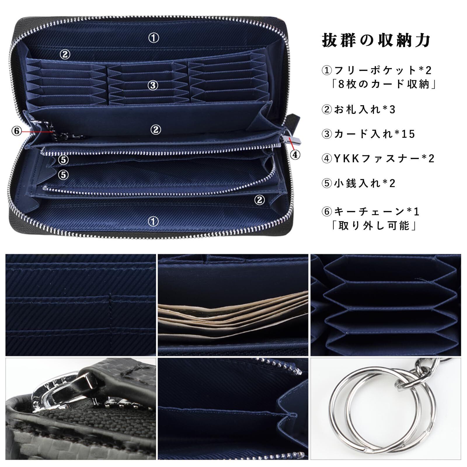 【2022最新】[NEWHEY] 財布 メンズ 長財布 カーボンレザー 23枚カード収納 YKK ラウンドファスナー 大容量 防水 小銭入れ お札入れ 紳士 ビジネス ブラックネイビー | libertyislan