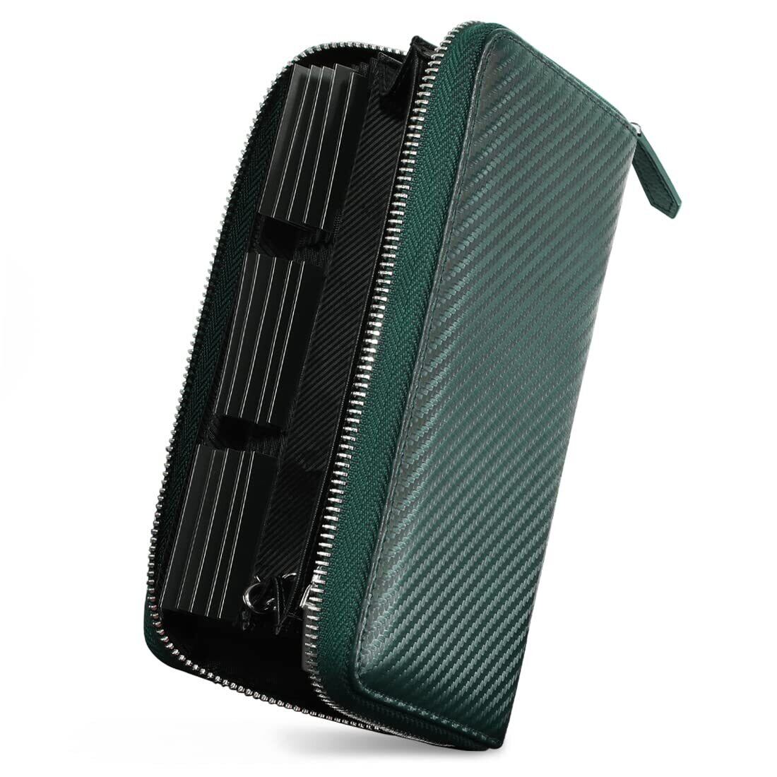 【在庫処分】[NEWHEY] 財布 メンズ 長財布 23枚カード収納 カーボンレザー YKK製 小銭入れ 革 ラウンドファスナー カード収納 防水 大容量 お札入れ 紳士 ビジネス (グリーン×ブラック) | libertyislan
