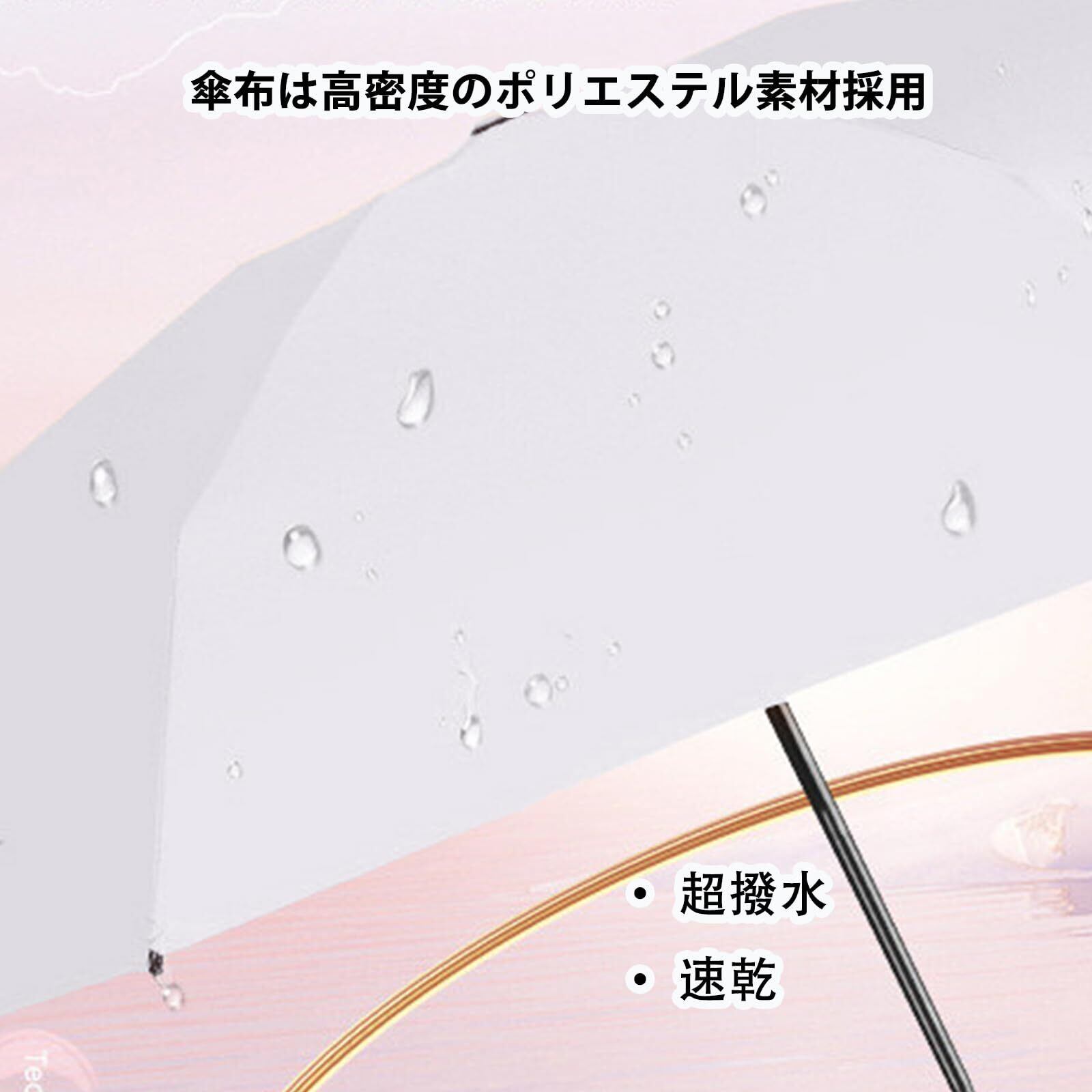 【耐風撥水 & 晴雨兼用】高強度アルミ合金製中棒と、錆びにくくて、しっかりした骨組みに作られ、頑丈で壊れにくい折りたたみ日傘です。傘布は撥水加工され、通常の日傘より撥水性があり、短時間で水切り、軽く振るだけで雨水を払い落とせます。全天候対応でき、雨の日も雪の日も晴天も使える折りたたみ傘です。