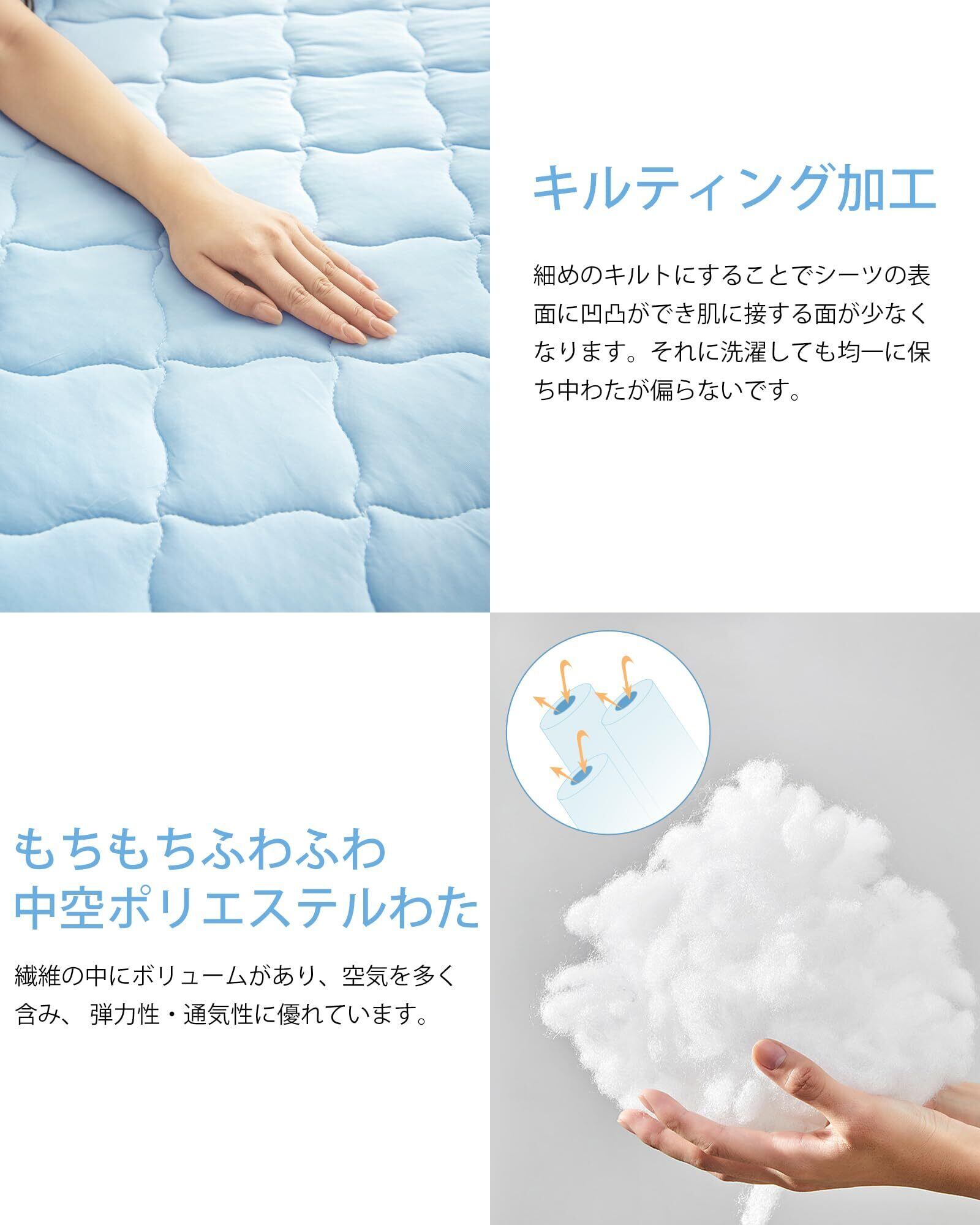 【快適な寝心地】 敷きパッドは中わた入りで、通気性が高く、熱がこもりにくいです。サラッとした寝心地を提供します。