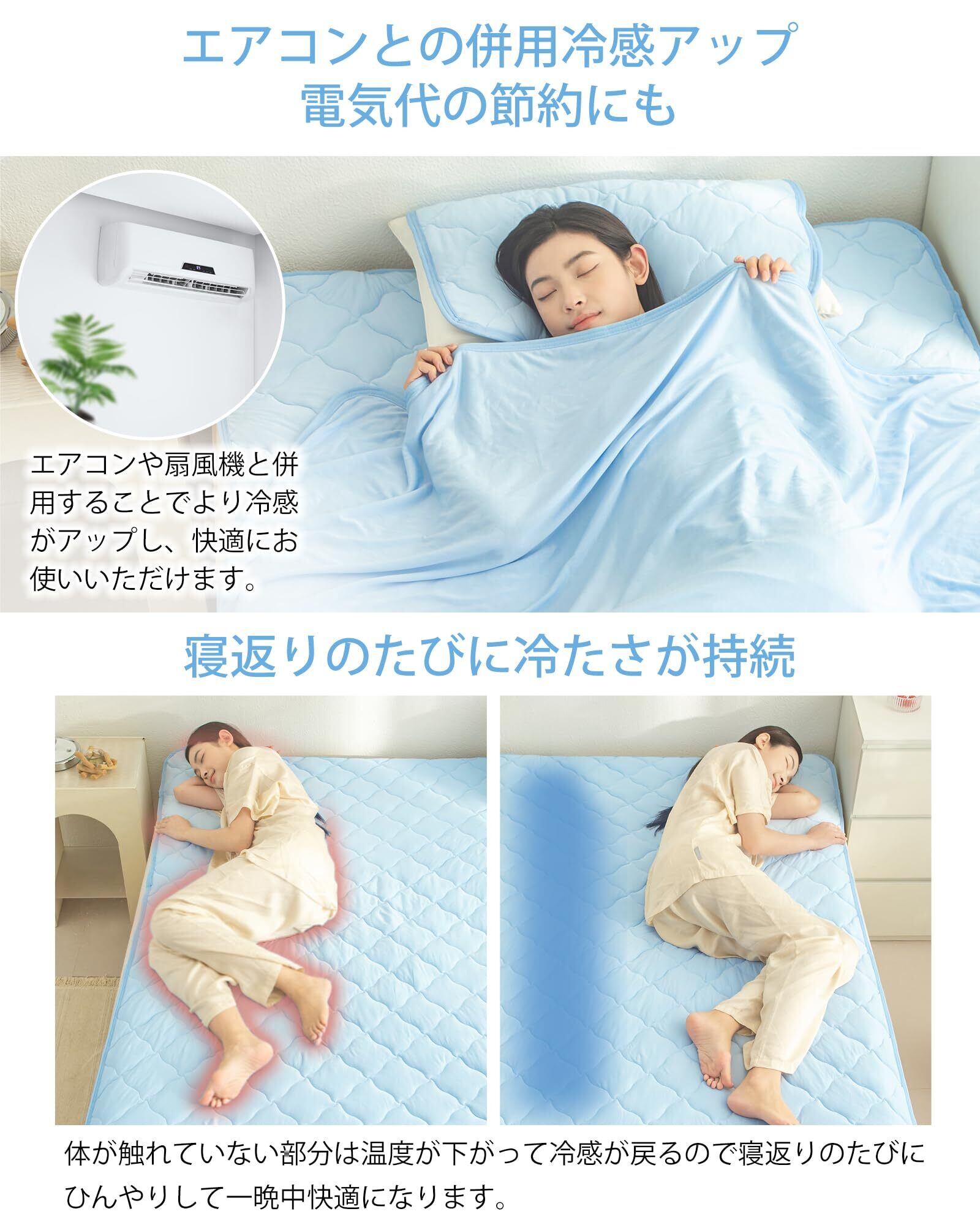 ❄️【冷感敷きパッド】❄️サイズ:100*200cm、表地:(ニット生地)ナイロン100%(ブルーテックス使用, 裏地:ポリエステル100%、生地重量:140g/m2、中綿:ポリエステル100%(抗菌防臭わた使用)
