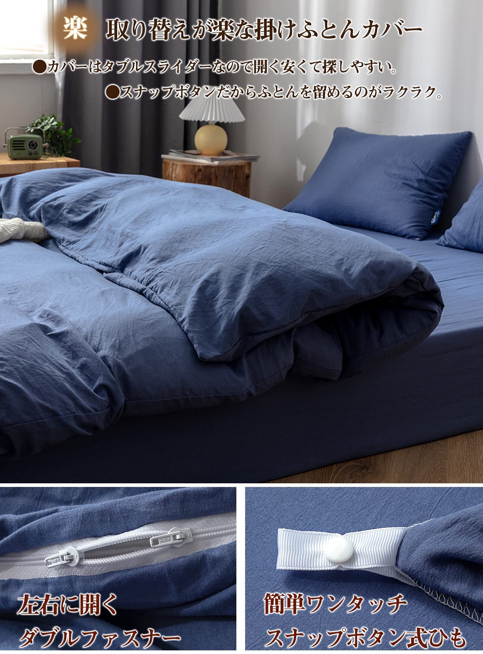 掛け布団カバー シングル 布団カバー 【洗いざらし & 超柔らかタイプ】 ダブルファスナー 抗菌防臭 吸水速乾 丸洗いOK オールシーズン 掛けカバー かけ布団カバー 掛ふとんカバー 肌に優しい (シングル ネイビー)