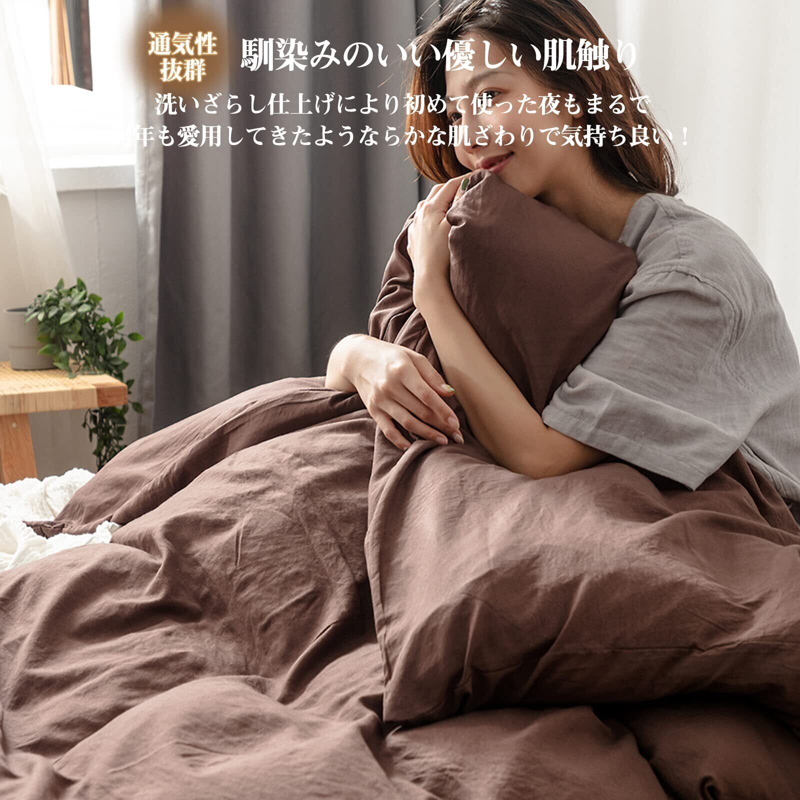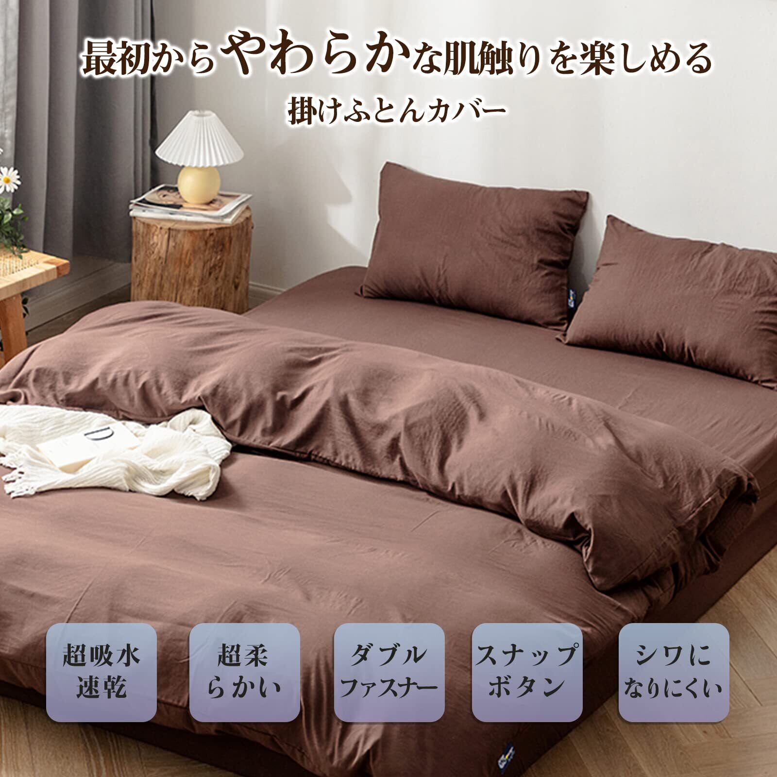 掛け布団カバー シングル 布団カバー 【洗いざらし & 超柔らかタイプ】 ダブルファスナー 抗菌防臭 吸水速乾 丸洗いOK オールシーズン 掛けカバー かけ布団カバー 掛ふとんカバー 肌に優しい (シングル ブラウン)