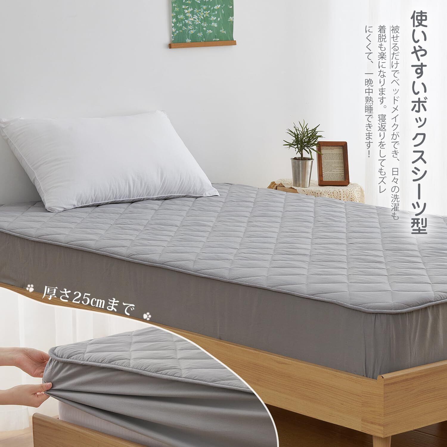 【新春セール】クモリ(Kumori) 綿100% パッド一体型ボックスシーツ シングル 毛玉なし 素肌にやさしい 吸水速乾 耐久性が高い 洗える オールシーズン TEIJIN中綿 抗菌 防臭 マットレスパッド ベッドシーツ ベッドマット 敷きカバー シングル・100X200cm グレー | libertyislan
