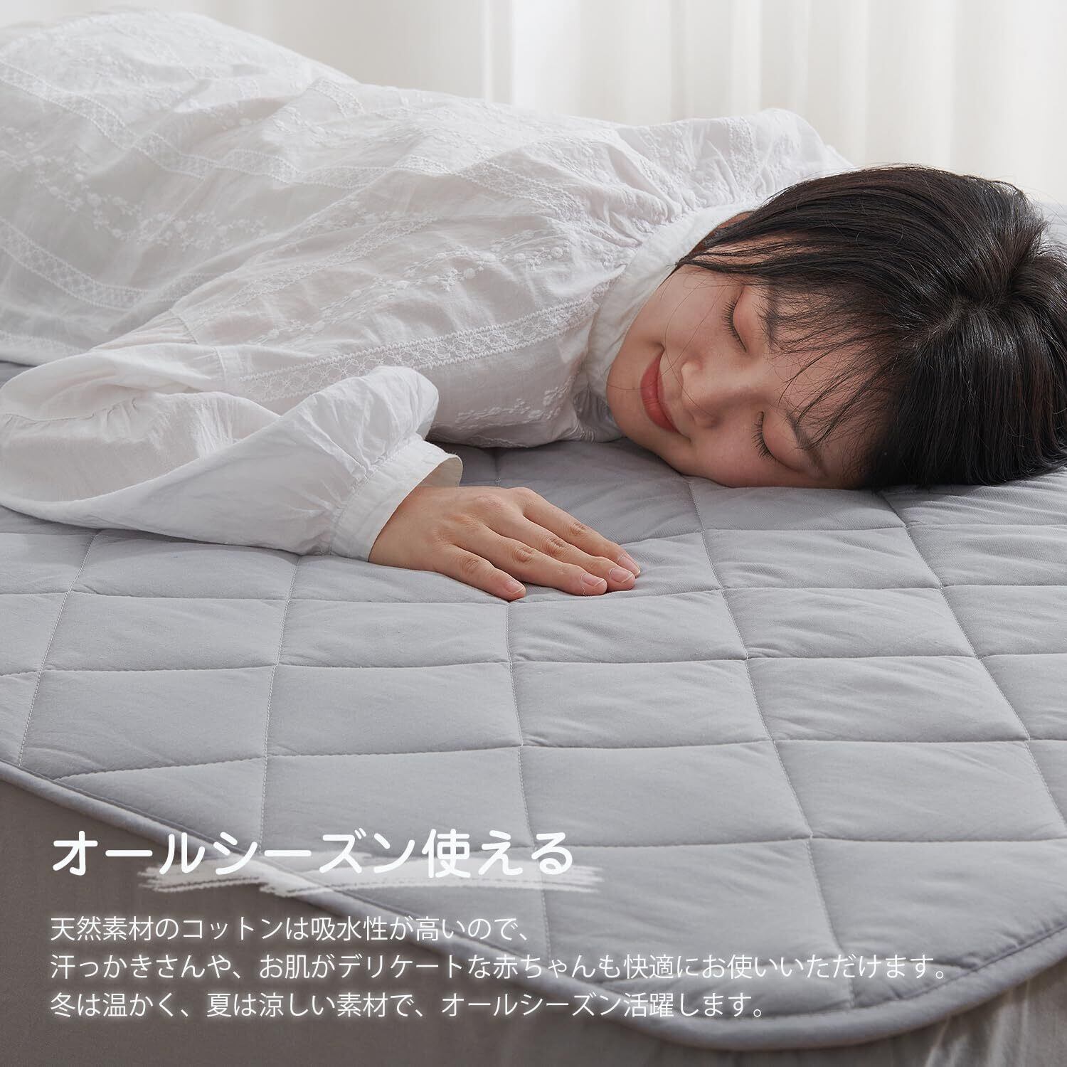 「シーツ不要も可」表面綿100%を使用、肌触りが最高です。毛玉やほつれなどがなく、静電気も少ないため、ベッドカバーをかけずに寝ることができます。