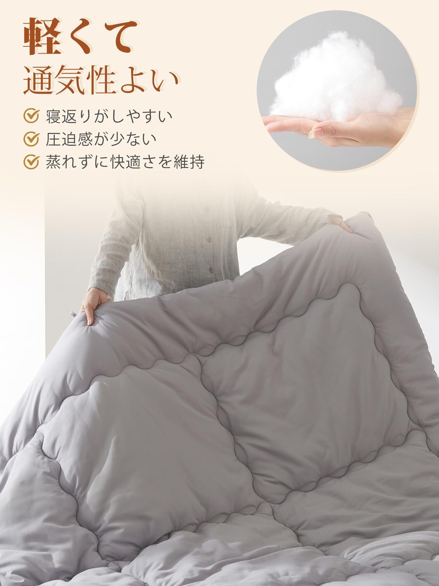 【1枚でオールシーズン快適に】軽量でありながら、保温性に優れた素材を使用しているため、寒い冬の夜でも暖かく、春や秋には心地よい寝心地を提供します。
