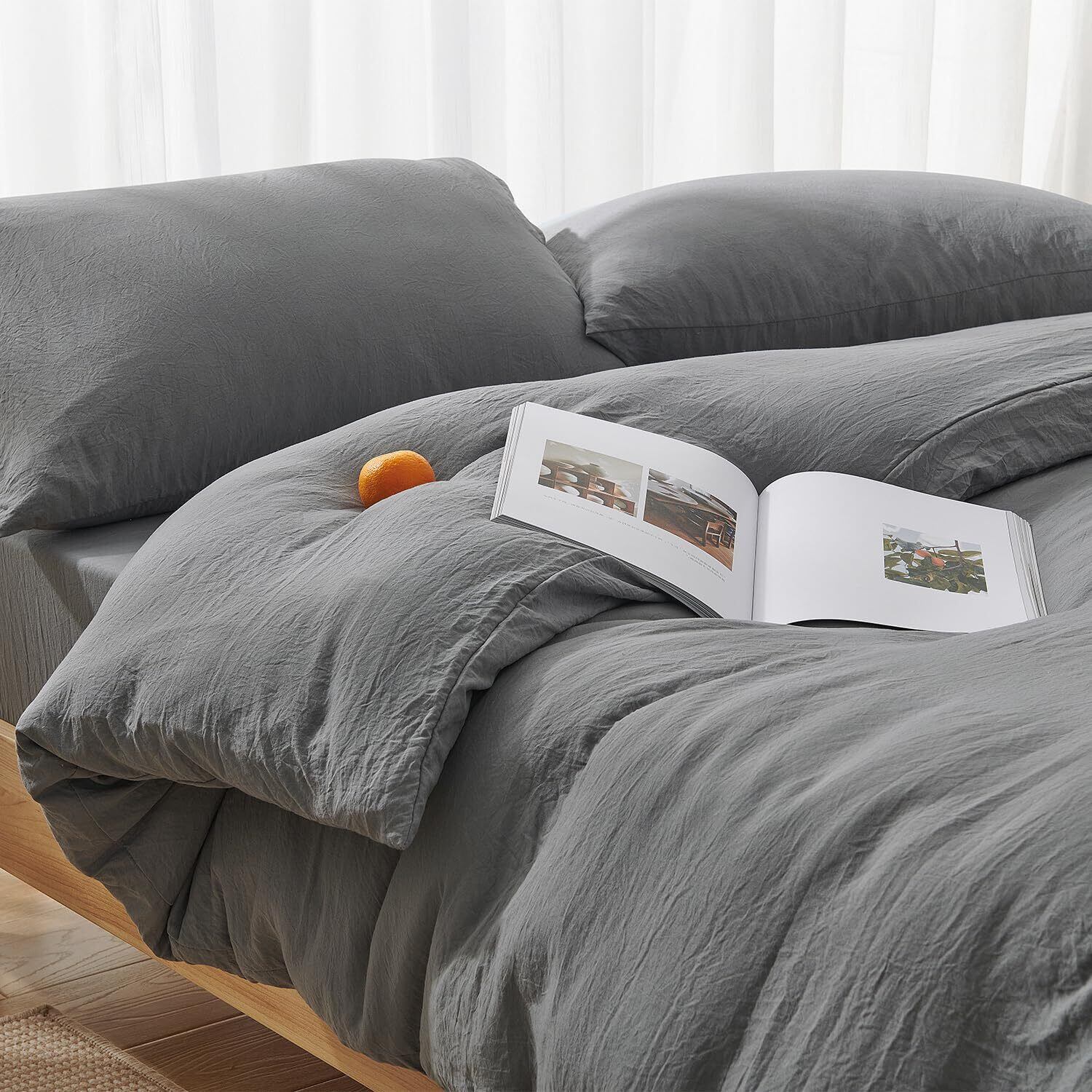 クモリ(Kumori) 掛け布団カバー シングル 洗いざらし 単品売り シワ加工 ピーチスキン しっとり 水洗い 柔らかい 肌に優しい 吸水速乾 丸洗いOK 洗える 無地 シンプル オールシーズン布団カバー 掛ふとんカバー 寝具カバー(150X210cm ダークグレー)
