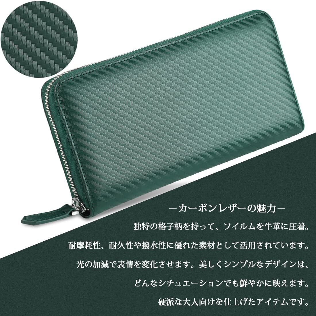 【在庫処分】[NEWHEY] 財布 メンズ 長財布 23枚カード収納 カーボンレザー YKK製 小銭入れ 革 ラウンドファスナー カード収納 防水 大容量 お札入れ 紳士 ビジネス (グリーン×ブラウン) | libertyislan