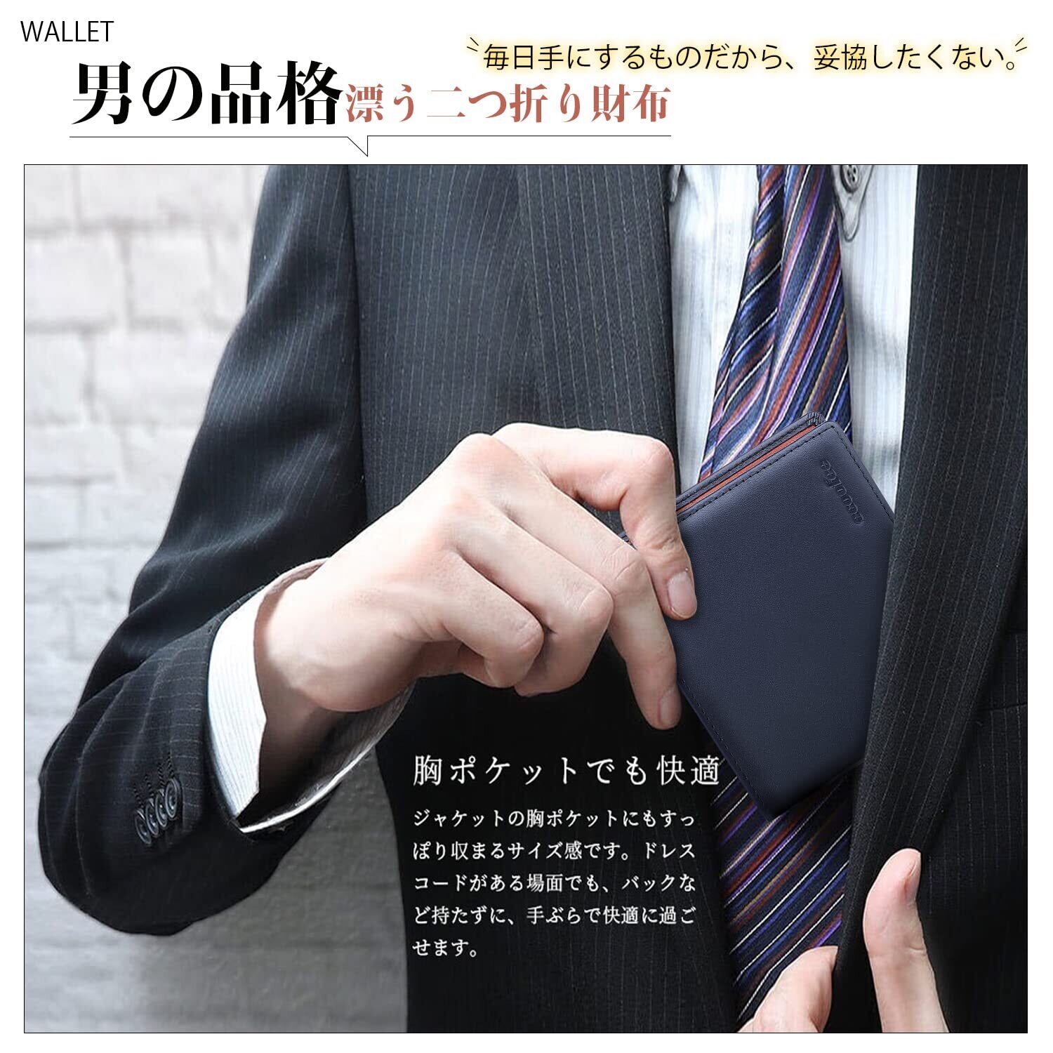 [ecoofee] 財布 メンズ 二つ折り 本革 薄い ボックス型小銭入れ 一流 の 財布 職人 が 作る 二つ折り財布 サイフ コンパクト (Blue)