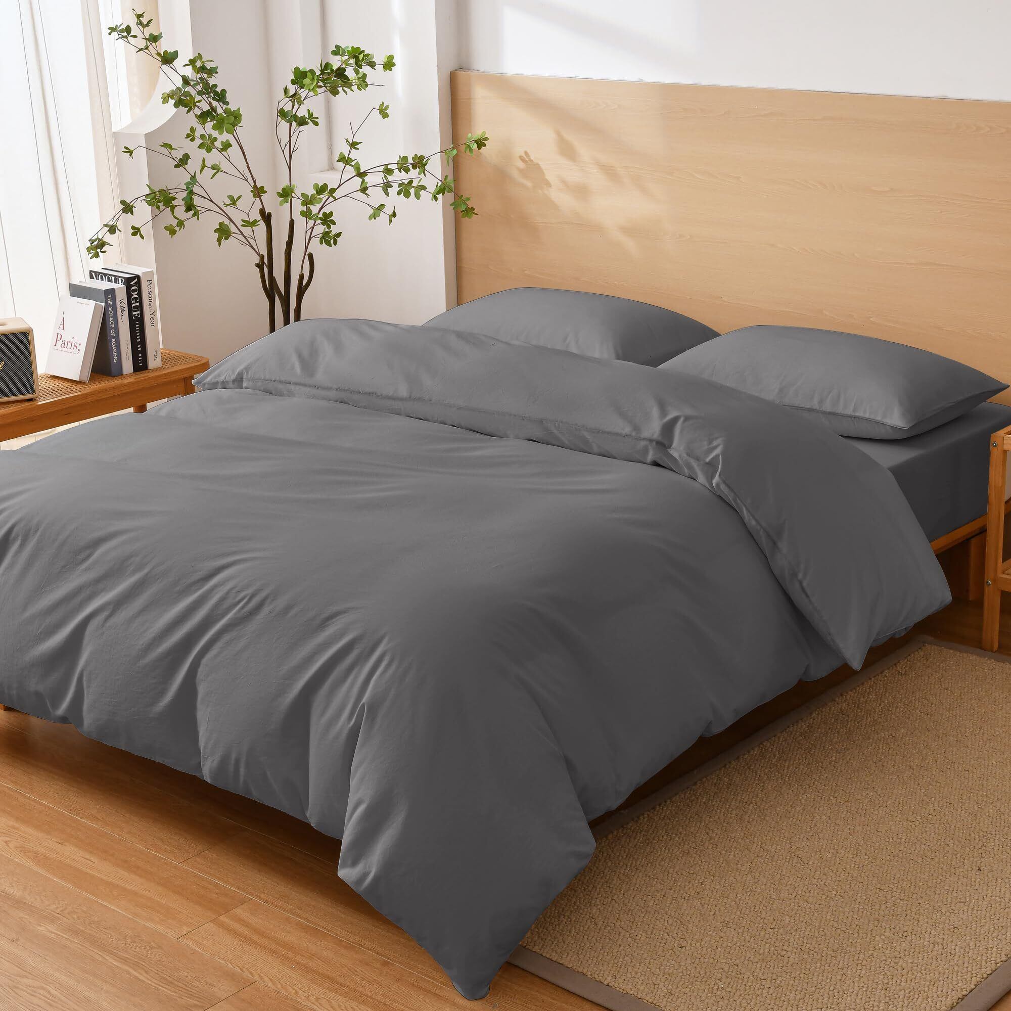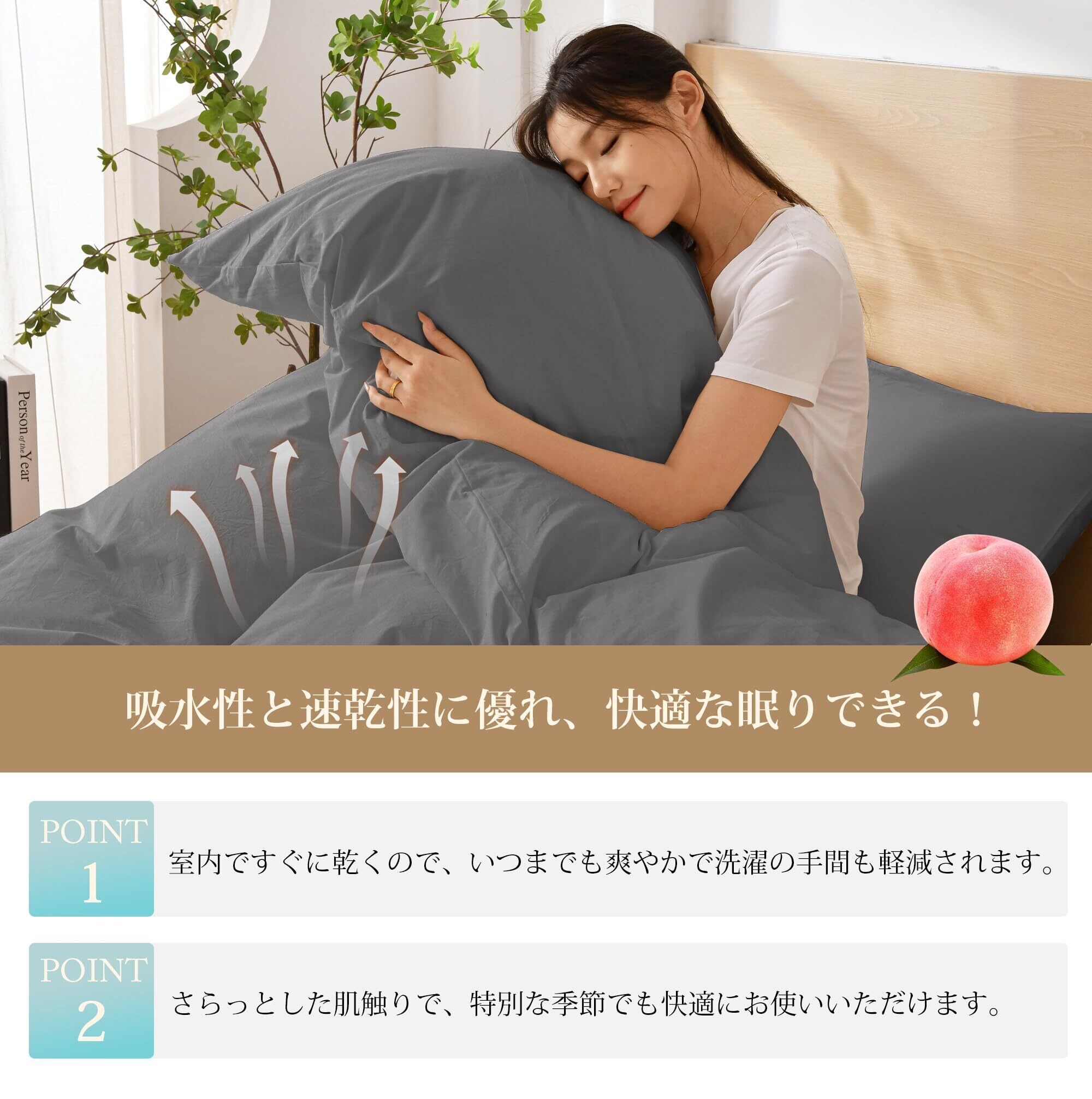 AYO 寝具カバーセット 布団カバーセット 洗いざらし シワ加工 水洗い やわらか (掛け布団カバー ボックスシーツ 枕カバー)吸水速乾 丸洗いOK 肌に優しい 無地 シンプル オールシーズン(シングル・3点セット ダークグレー)