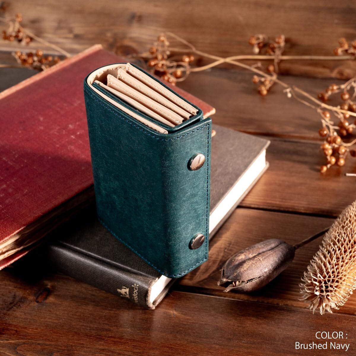 [Dom Teporna] ミニ財布 大容量 カード24枚 二つ折り財布 メンズ 財布 本革 イタリアンレザー ボックス型小銭入れ コンパクト ブラッシュドネイビー