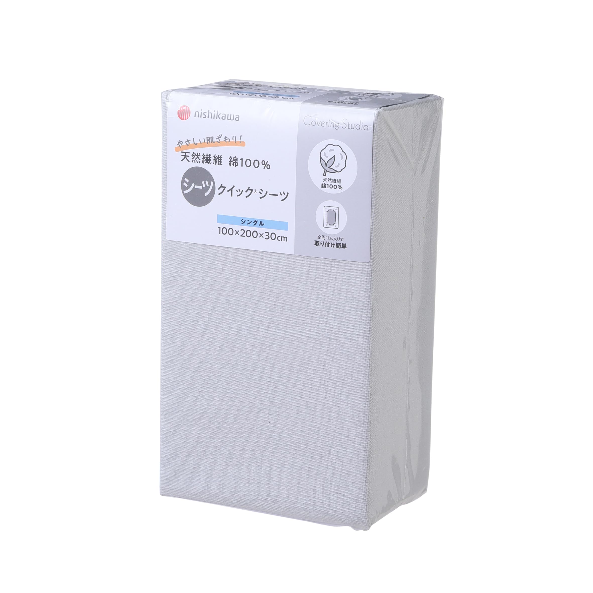 【在庫セール】nishikawa【西川】 クイックシーツ シングル 洗える 肌に優しい触り心地の綿100% ボックスシーツ 装着簡単でずれにくい 無地 カバーリングスタジオ CT4007 グレー PK04280057 | libertyislan