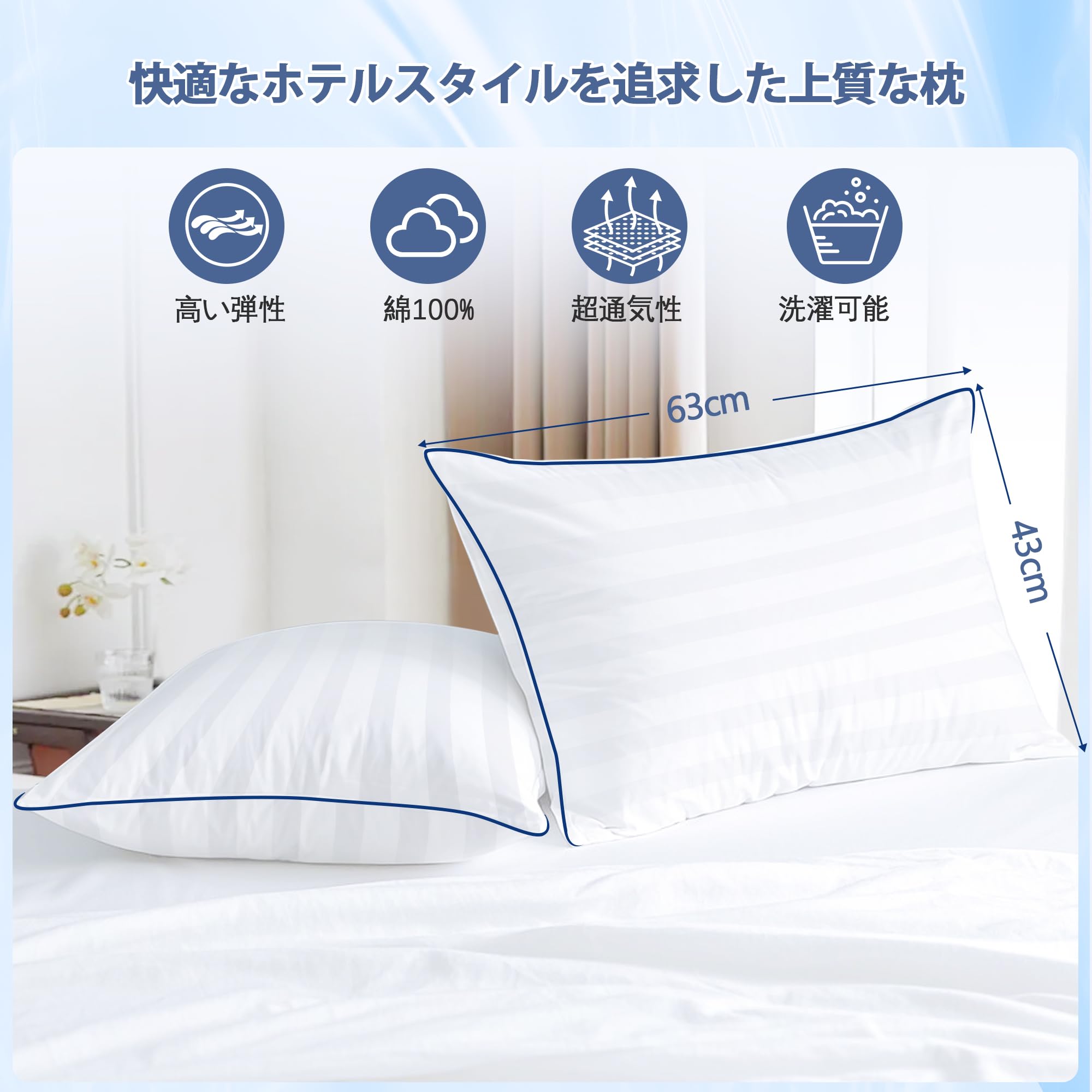 【Amazon 限定ブランド】枕 まくら WEIDUOYI 安眠枕 高級ホテル 洗える枕 高反発枕 通気性 うつぶせ寝 横向き寝 枕 肌に優しい 快眠枕 43*63*20cm 2個セット ホワイト(グレー 枕カバー2個付属)