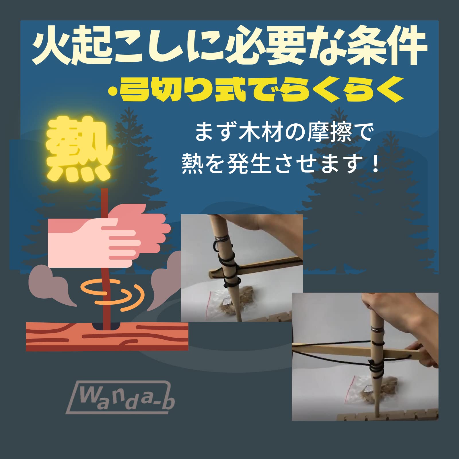 Wanda-b 原始 焚き火 楽しむ 火おこし 弓切り式 道具 火種 神秘 感動 木の摩擦熱 火を起こす キャンプの英雄