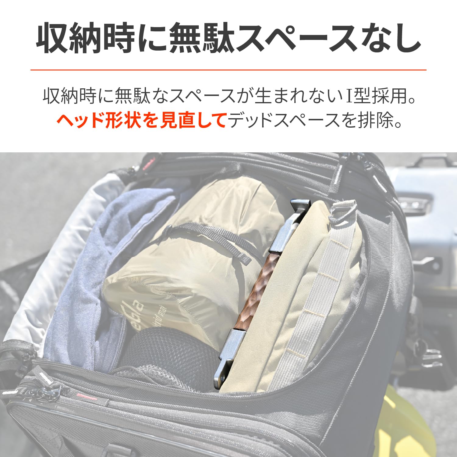 ハンマヘッドから無駄な出っ張りを削ぎ落としたI型ヘッド。デッドスペースなく収納可能