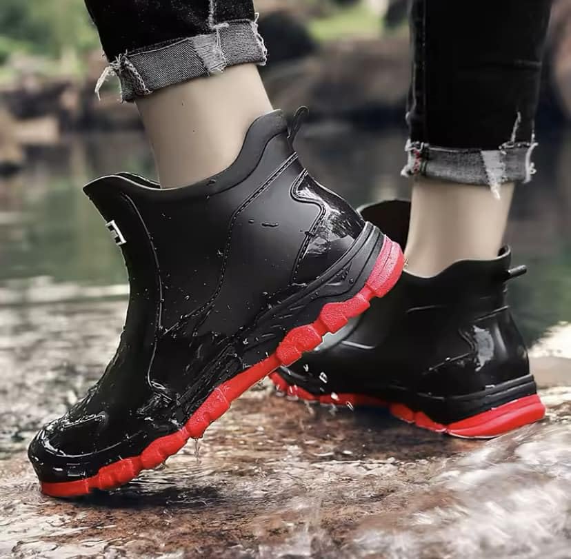 【脱ぎ履きしやすい】さっと履けるスリッポンタイプのレインシューズ。