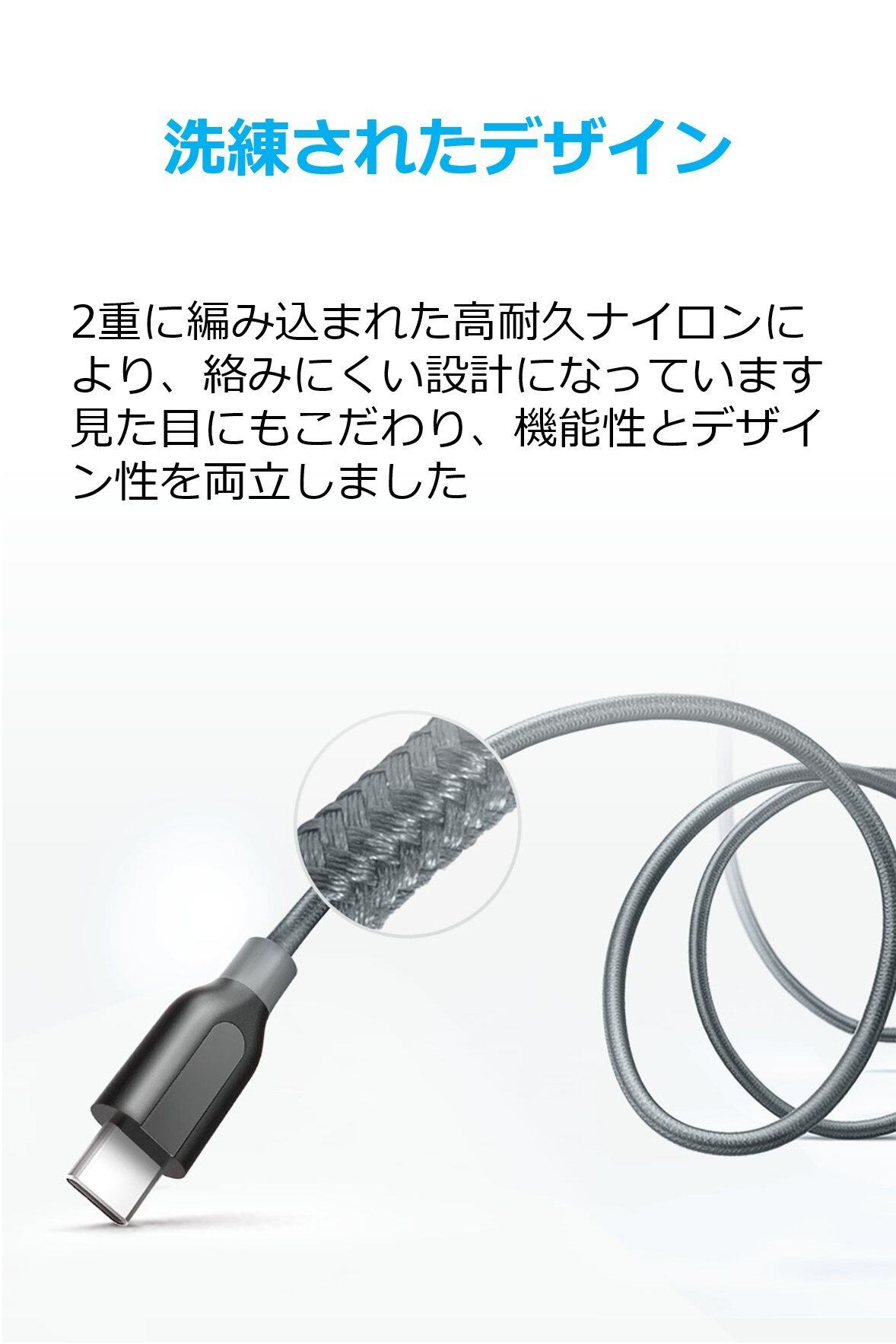 Anker PowerLine+ USB-C & USB-A 3.0 ケーブル (0.9m グレー) iPhone 15 Galaxy iPad Pro/MacBook/MacBook Xperia XZ1 その他Android各種、USB-C機器対応