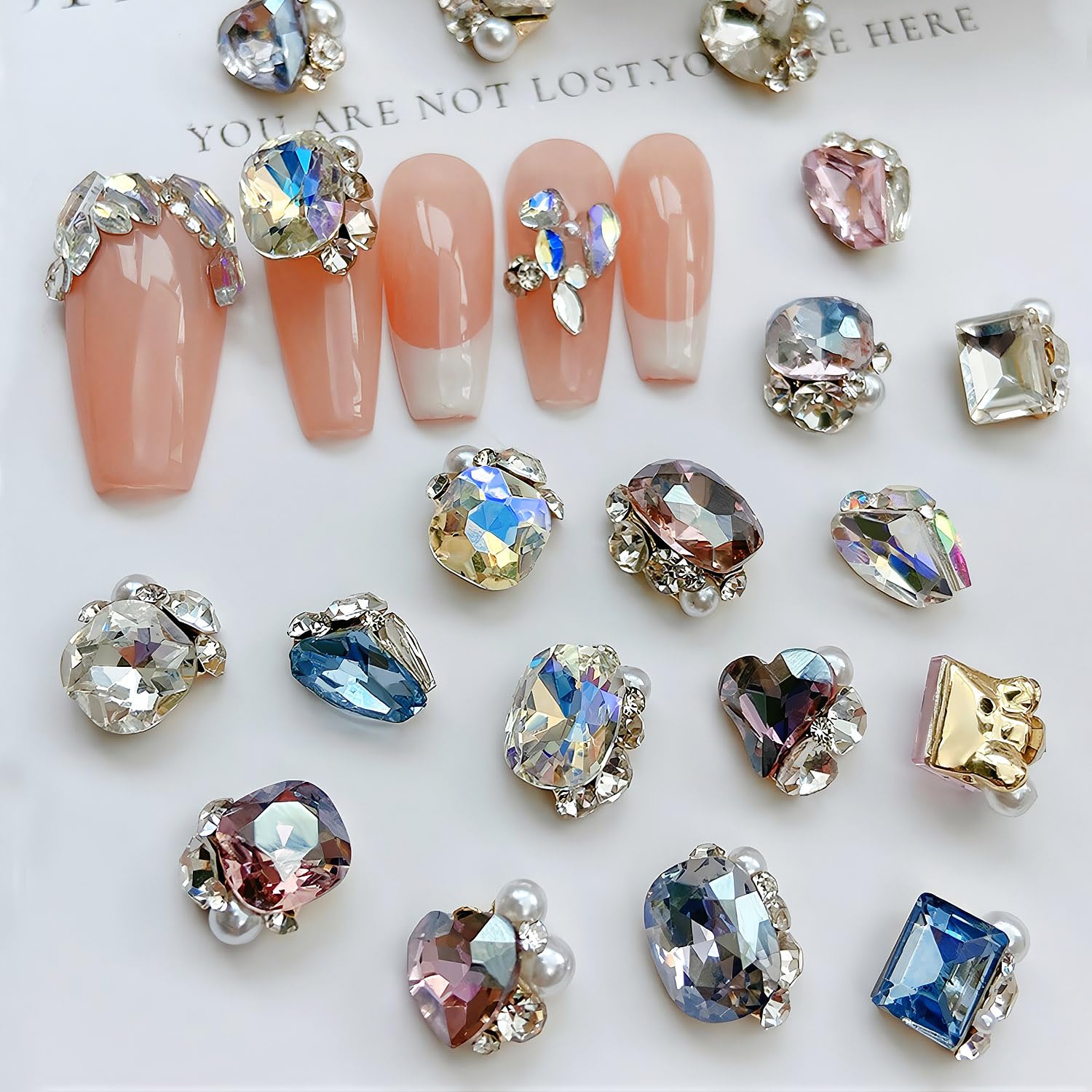 【6種類の形】真ん中の大きなラインストーンには、丸、四角、ハートなど6種類のラインストーンがあり、一度に様々な組み合わせを試すことができます