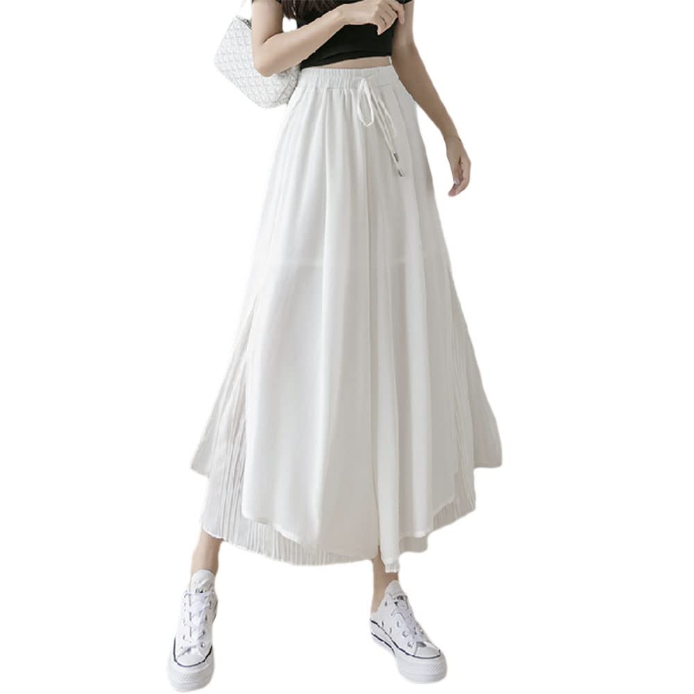 【人気商品】[SUN KAKU] [サンカク]ワイドパンツ レディース 春スカート ガウチョ ロング ギャザー シフォン フレア プリーツ レイヤード 体型カバー ウエストゴム 夏 春 秋 | libertyislan