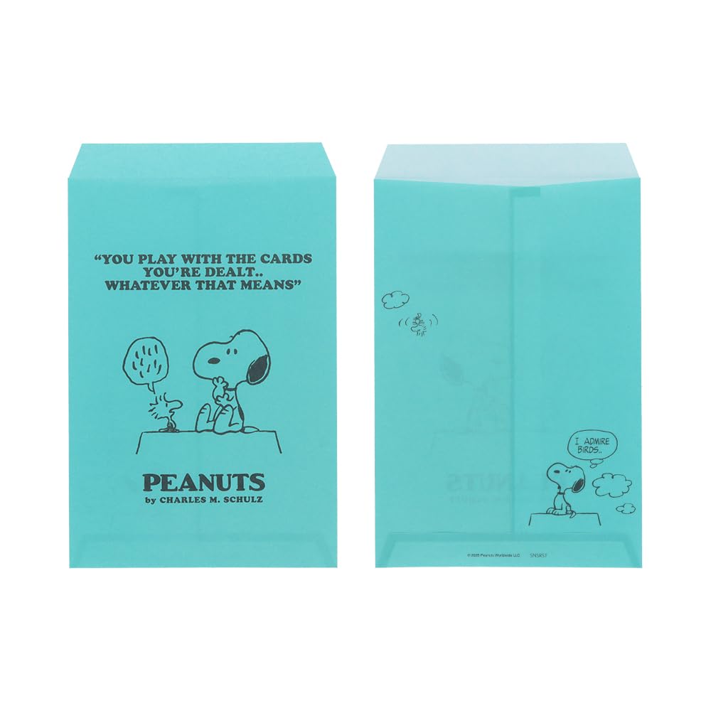 ライトブルーの大きい封筒と、アイボリーの小さい封筒のセットです。それぞれ異なる姿のスヌーピーとウッドストックが可愛いデザイン。