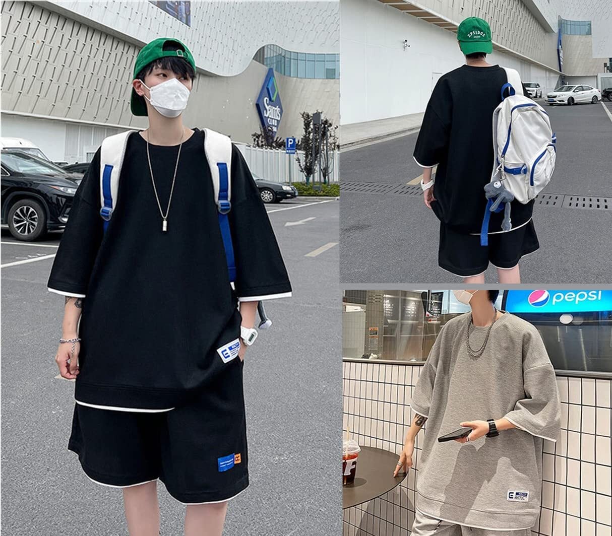 [Cloudstop] tシャツ メンズ 半袖 上下 セット 夏服 ゆったり ジャージ メンズ 上下 ハーフパンツ セットアップ メンズ 無地 スウェット メンズ 上下セット フェイク レイヤード 大きいサイズ