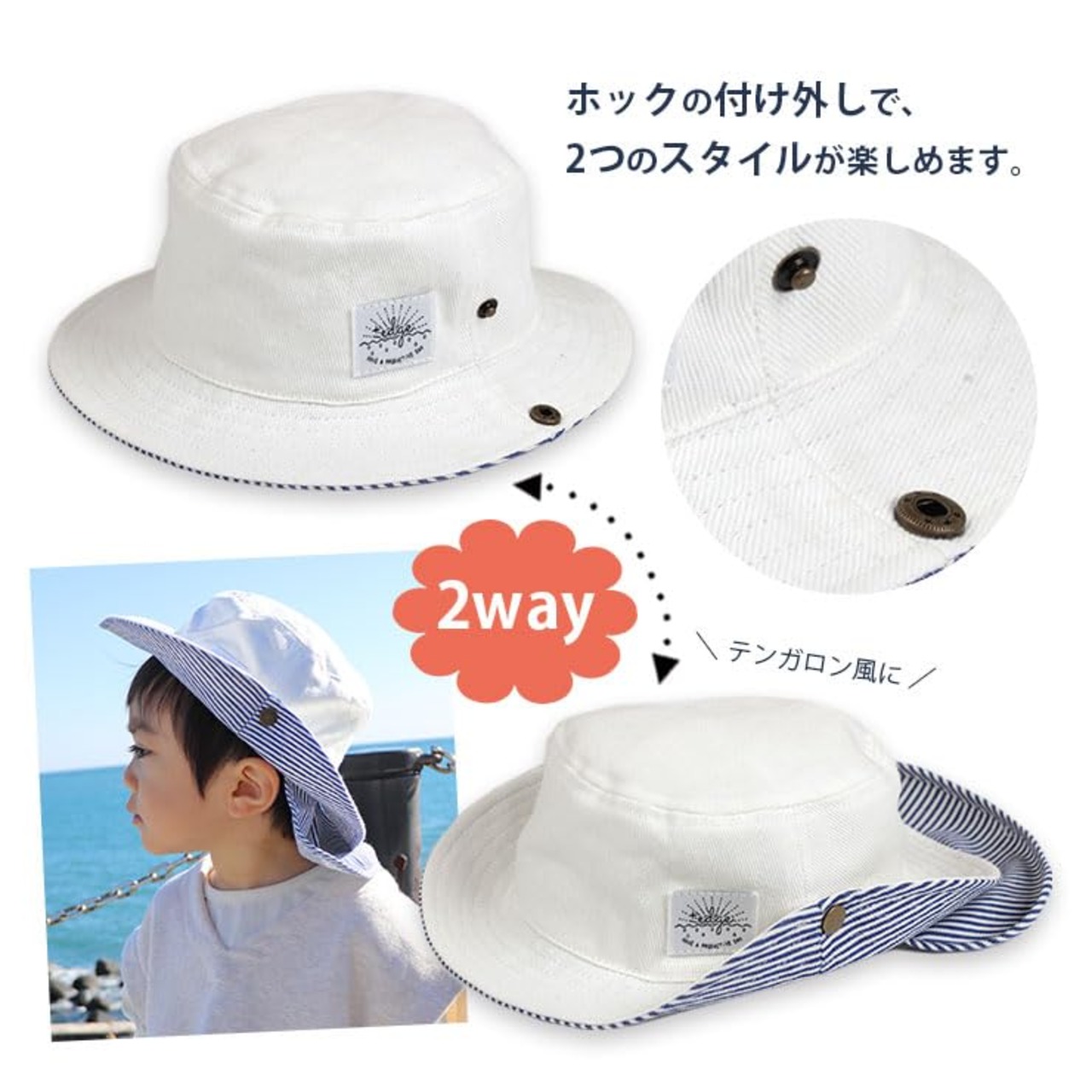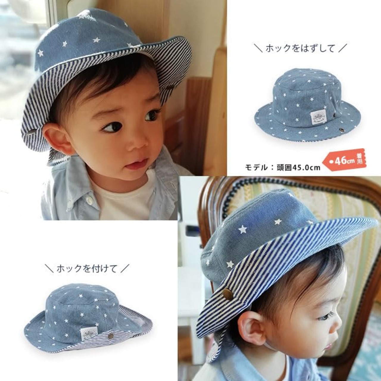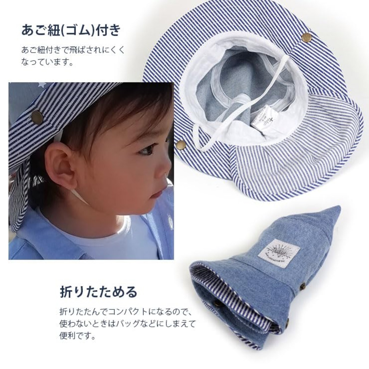 [and edge.] ベビー キッズ 2way コットンハット 帽子 ゴム付き たれ付き つば広 子供用 男の子 女の子 綿100% デニム uvカット upf50+