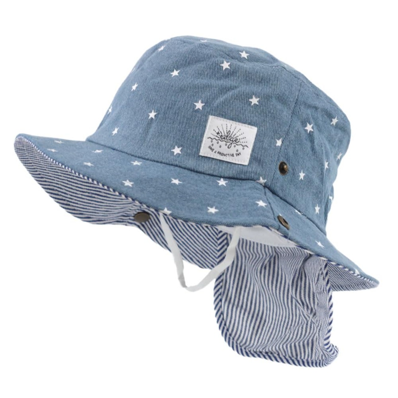 【特価セール】[and edge.] ベビー キッズ 2way コットンハット 帽子 ゴム付き たれ付き つば広 子供用 男の子 女の子 綿100% デニム uvカット upf50+
