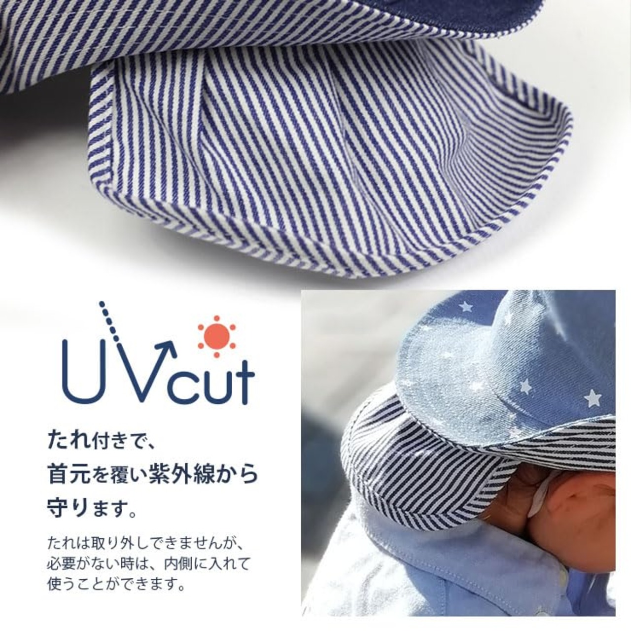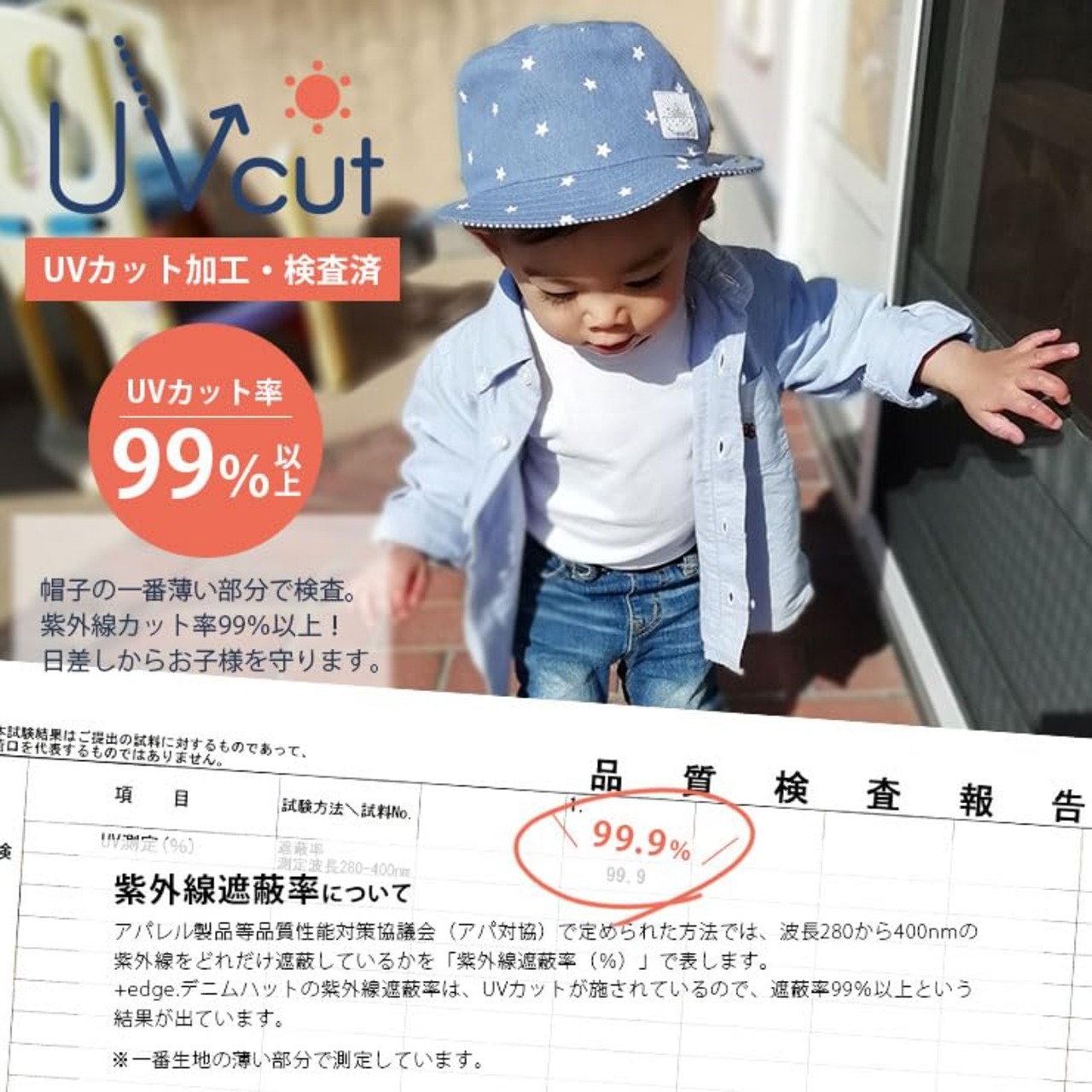 UVカット率99%以上、検査済!紫外線をカット!誰にでも似合うデニムデザインで、綿100%が嬉しい!