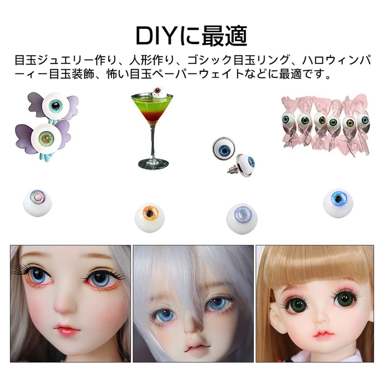 用途:目玉ジュエリー作り、人形作りやゴシック眼球リング、ハロウィンパーティーの装飾などに最適です。