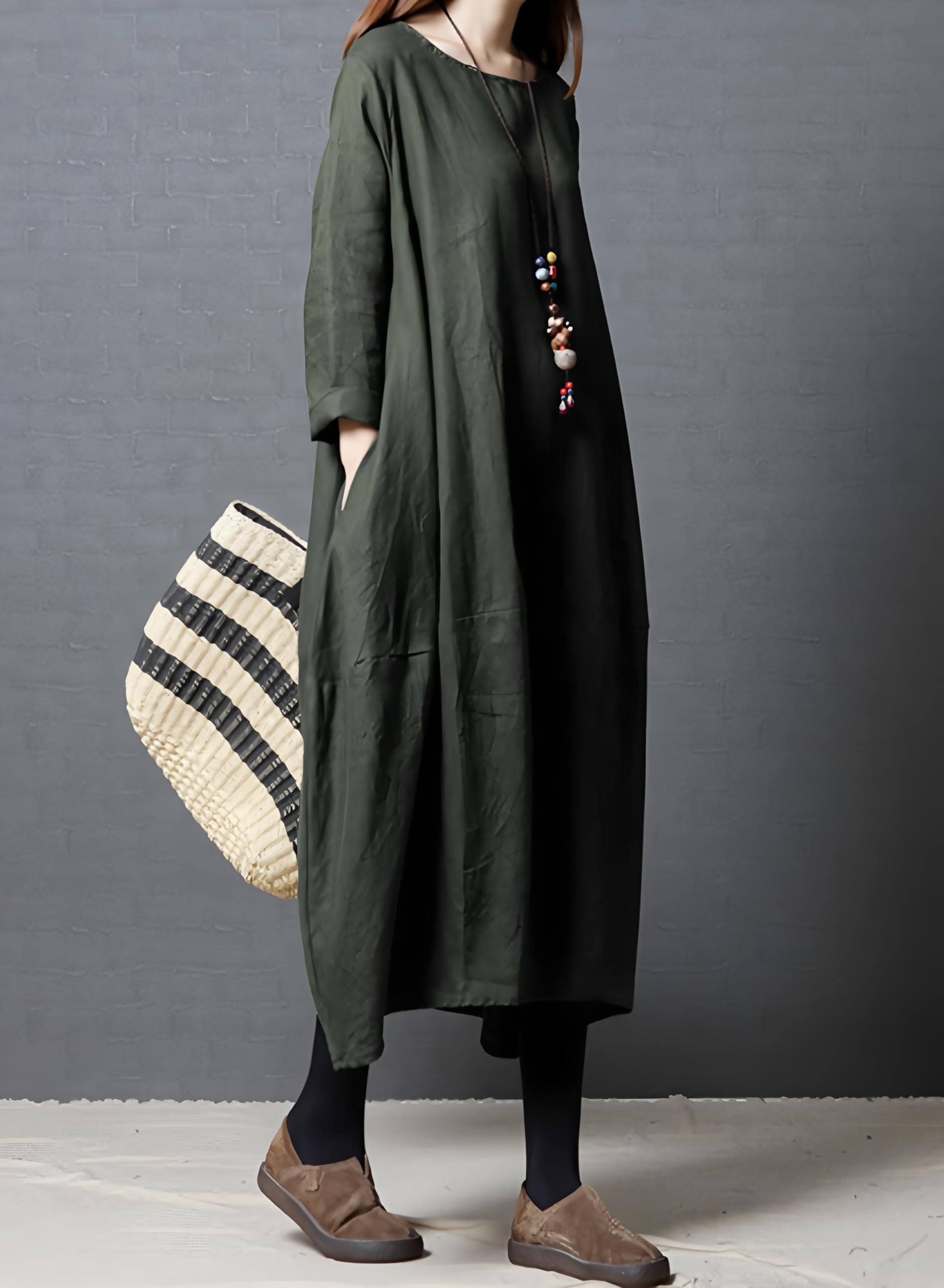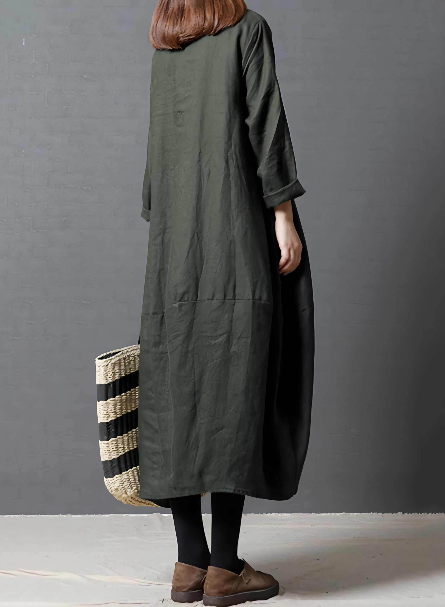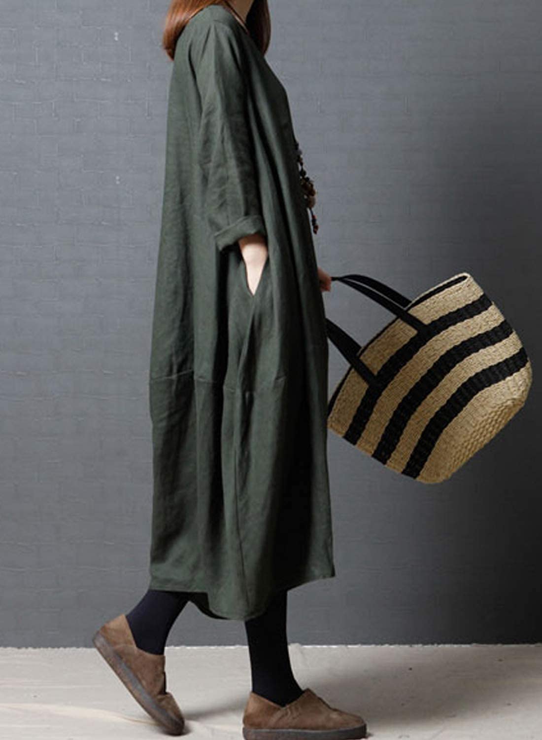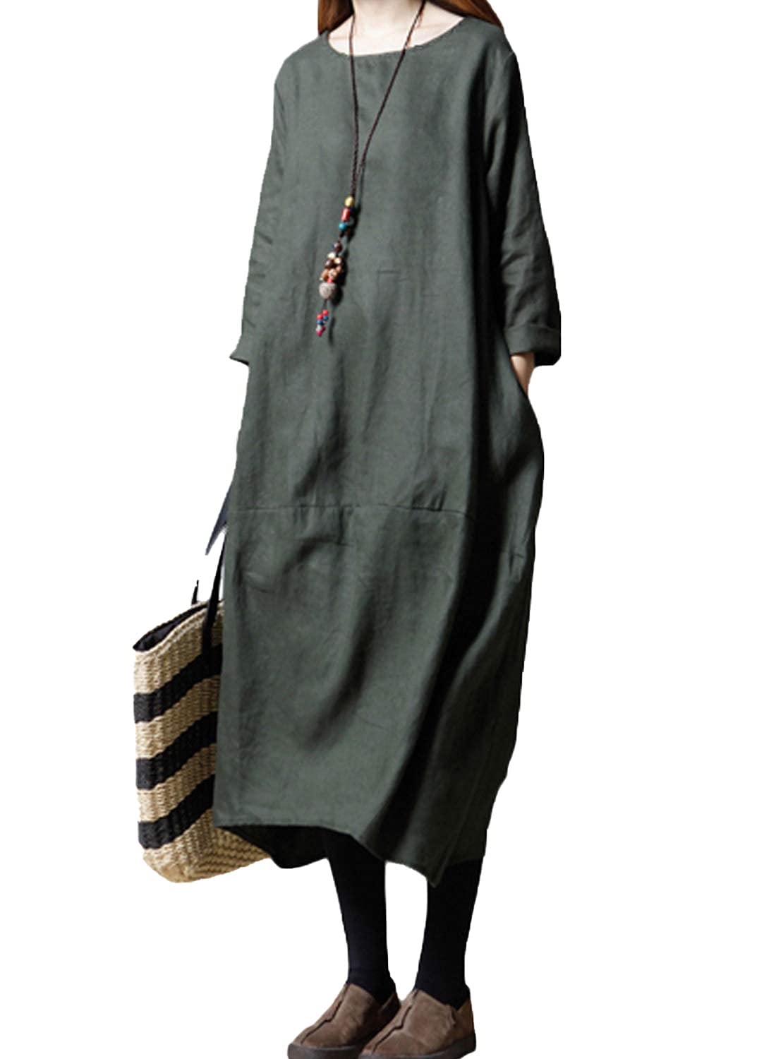 [JINJUDUO] ワンピース レディース ロングワンピース 夏 長袖 薄い コットンリネンワンピース 着痩せ チュニック マキシ丈 トップス ゆったり 無地 秋 綿 体型カバー 大きいサイズ レディース服