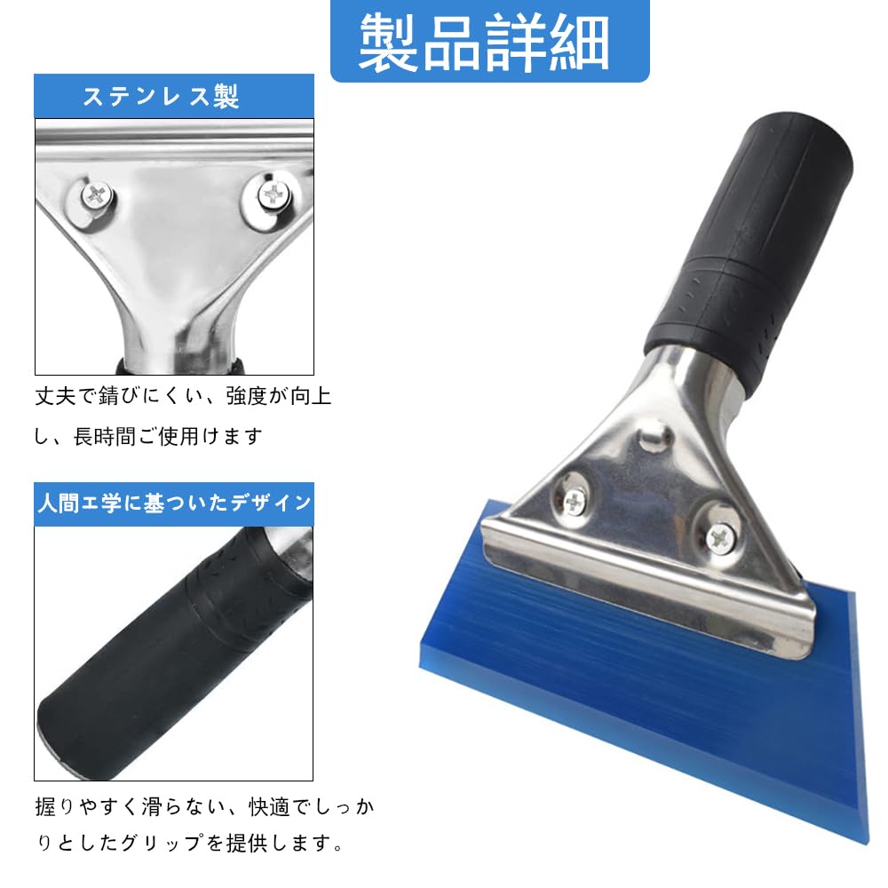 【耐久性と信頼性】:スクイージーのハンドルはステンレス製で、破損しにくく耐摩耗性があります。スクイージー部分は柔軟でしなやかなゴム素材を採用し、エッジが滑らかで表面のフィルムを傷つけることがありません。耐久性がある,堅牢な構造と優れた耐摩耗性により、日常のメンテナンスで使用しても、より困難な施工プロジェクトに直面しても、長期的に使用するための理想的な選択肢となります。
