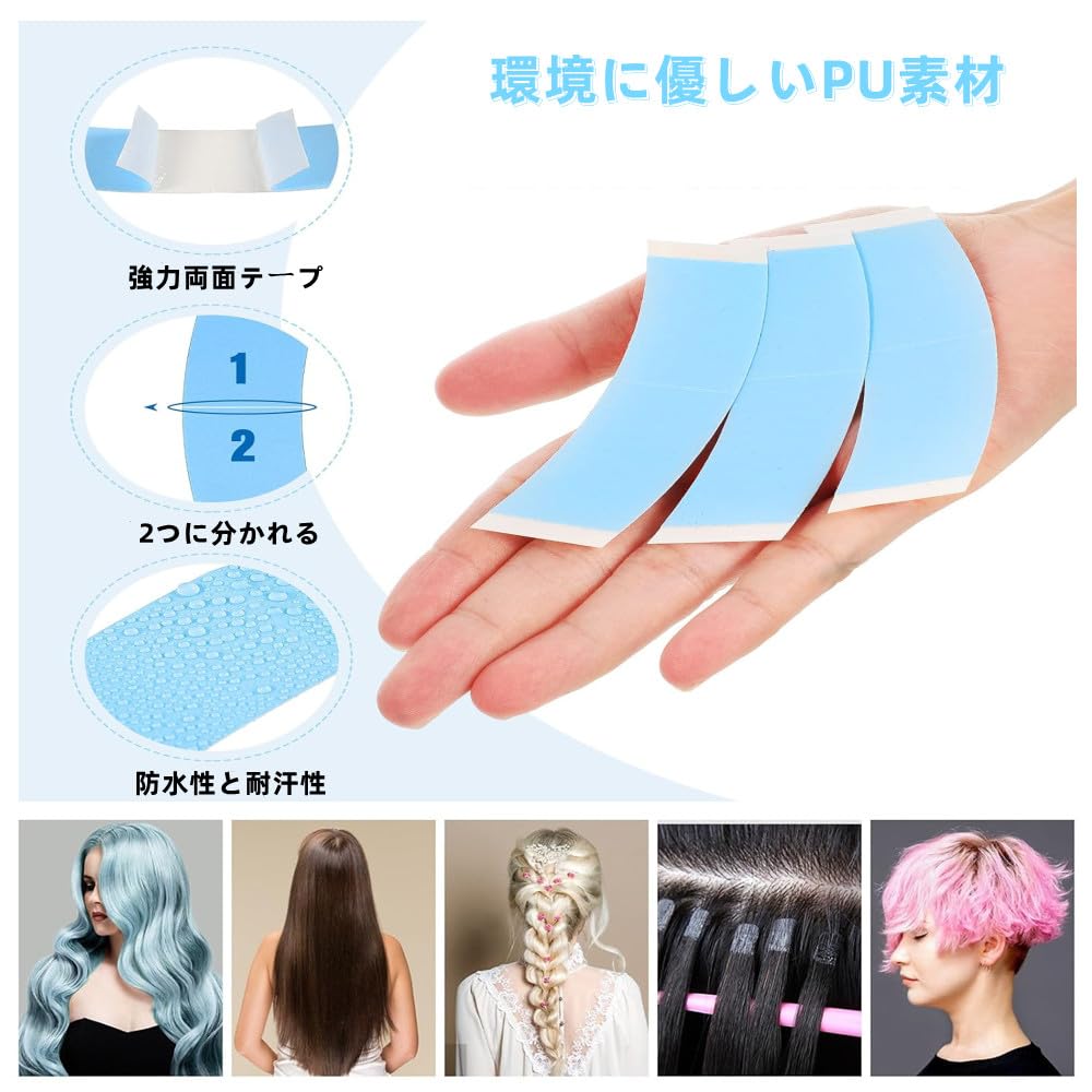 かつら両面テープ 50枚セット ヘアエクステンションテープ ウィッグ用両面テープ ウィッグ粘着テープ 強力両面テープ かつら用 交換用粘着テープ PU素材製 ウォータープルーフで長持ち 強粘着 隠し可能 透明 かつら接着に適したヘアエクステンションテープ 美容ツール