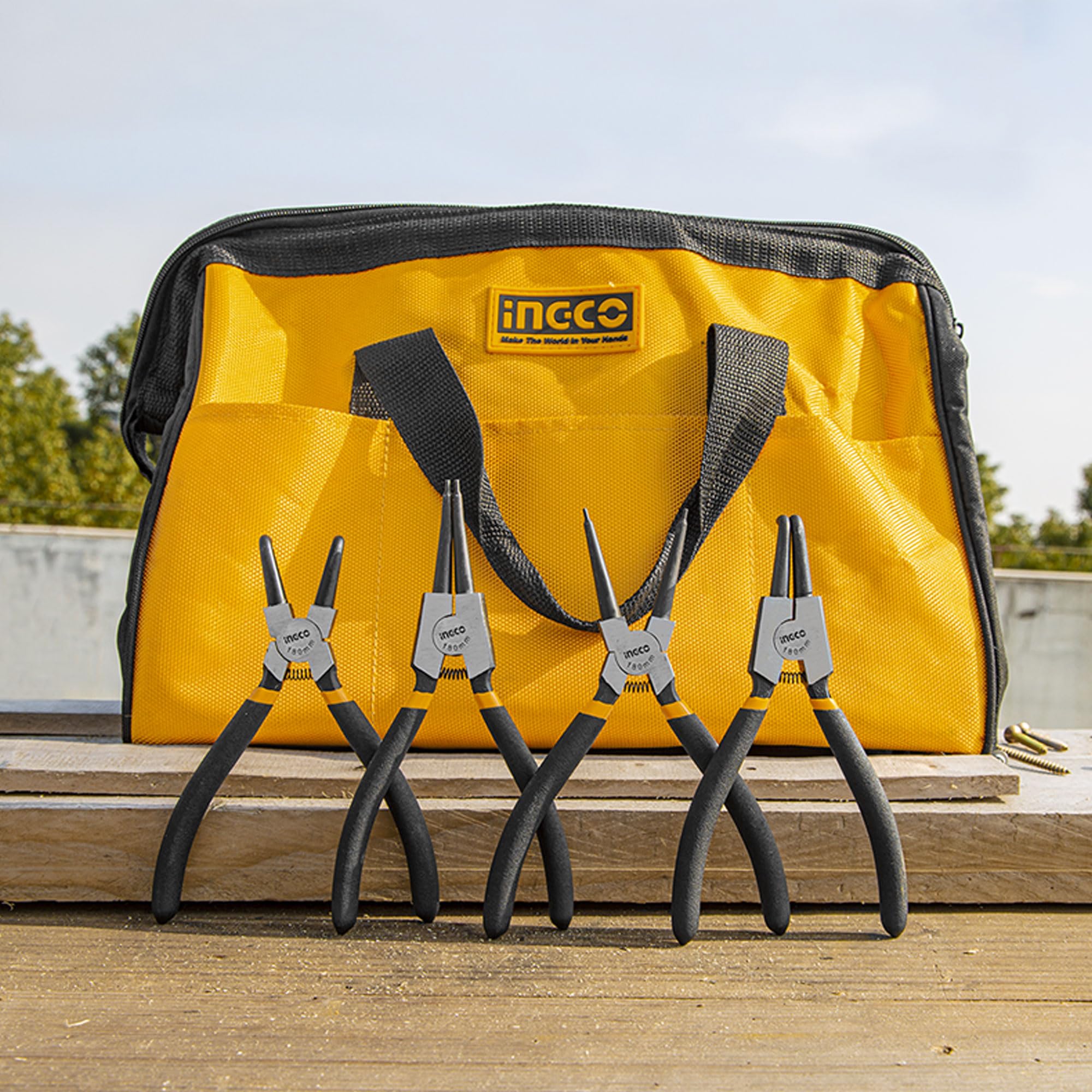 【在庫セール】INGCO スナップリングプライヤー 4本組 先端直径φ1.8mm 全長180mm HCCPS01180