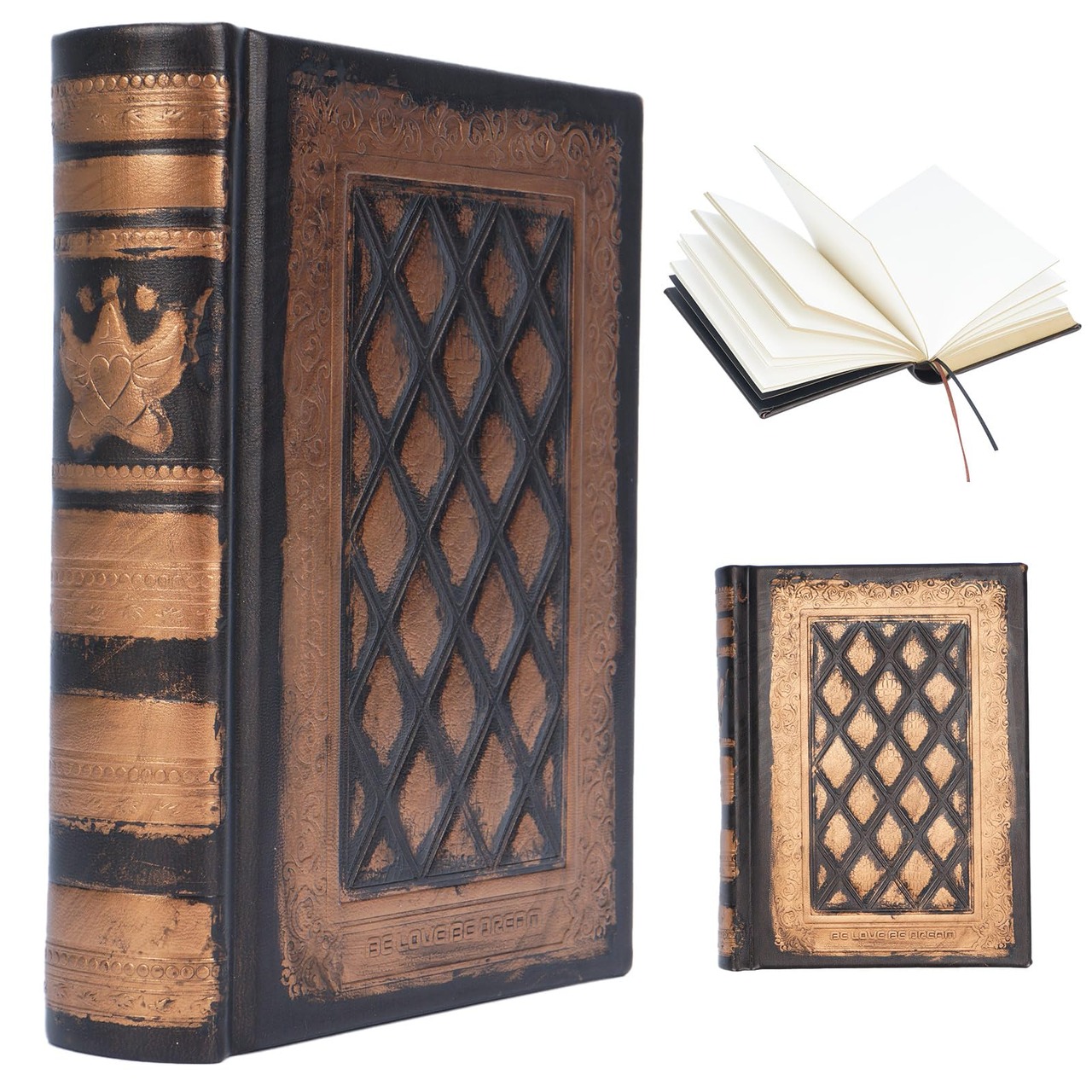 aleawol アンティーク ノート B6 日記帳 ハード カバー 魔導書 176ページ 白紙 分厚いノート 洋書風 自由帳 (17.6x13cm/ブラック)