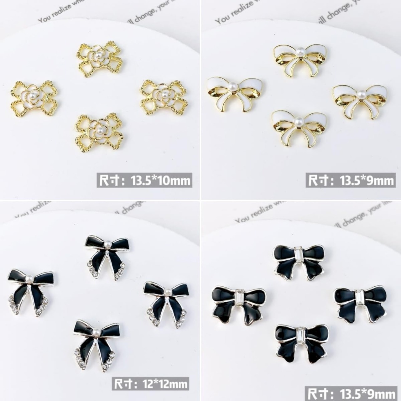 様々な形のリボンネイルパーツ、色とバリエーションが豊富、ネイル装飾用にお勧め!