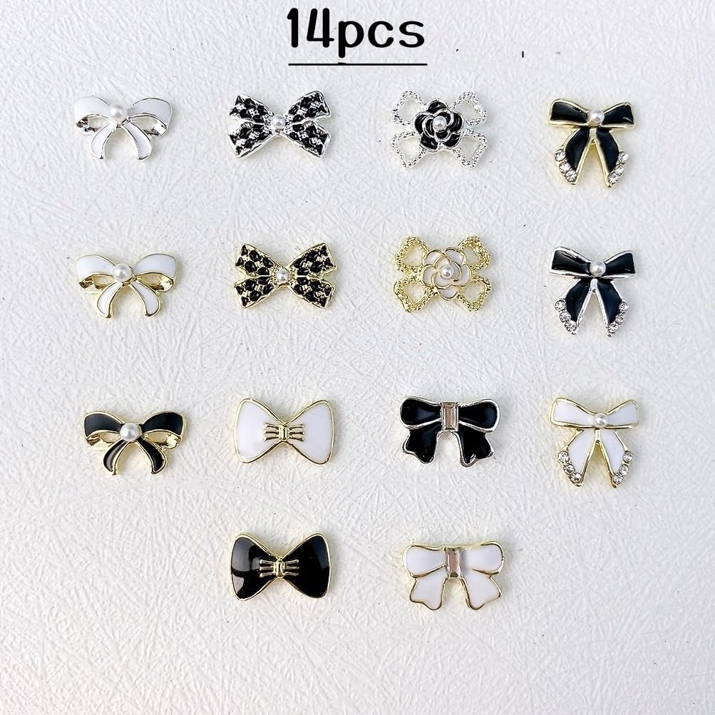 DUOLEIMI ネイルパーツ リボン ハート 蝶結び ネイルデコパーツ 立体 3D ネイルアート メタルパーツ ジュエリーパーツ 人気 ネイルデザイン おしゃれ アクセサリーパーツ (メタルリボン14個)