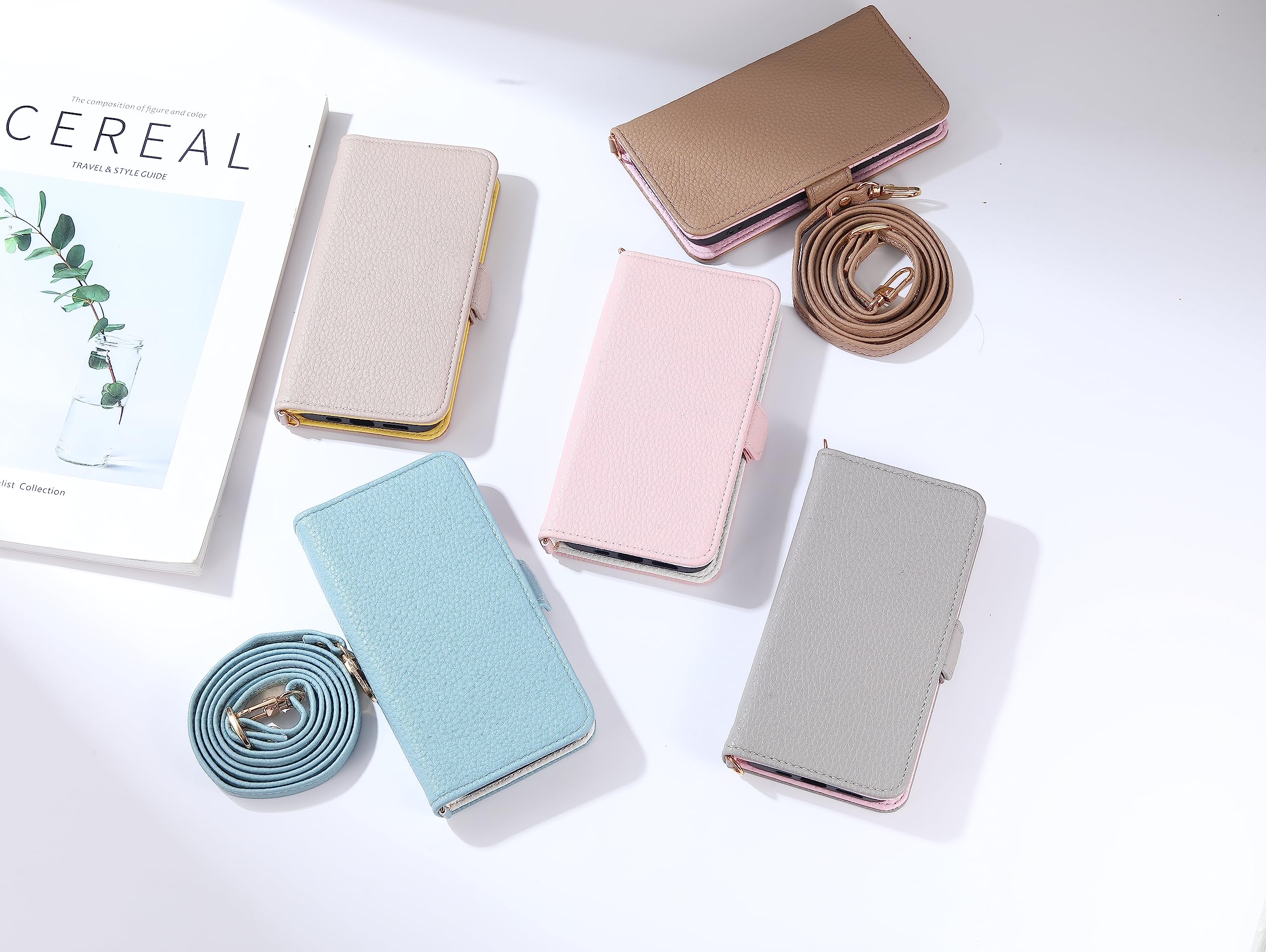 【実用的なデザイン】❶大人かわいいカラーを取り揃えたツ-トンカラーケース 【実用的なデザイン、長さ調整可能のショルダーストラップで肩や首に掛けるとバッグ風になるのでおしゃれなです。長さ約80cm~150cm 用途に合わせて自由に長さを調整できます。特にポケットがない服が多いので、ストラップがあるとスマホをなくす心配もなく、両手が空くので首からかけられるのが便利です。❷自分で貼り付けたミラーが付属しています。ミラーが角丸処理、プラスチック素材、スマホに傷つけません^_^ ※保護シール貼っています!必ず剥がした上使用してください。❸内側と他の家が違うのは。弊店は内側もすべて厳選された革を採用しており,より便利に清潔にするために、耐久性が高い。