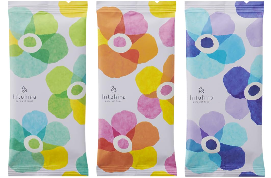 【新春セール】mimoto hitohira 使い捨て ウエットタオル【FLOWER】フラワー 30枚(3種各10枚) 香り付 綿100% おしぼり コットン カラータオル 平型 個包装 | libertyislan