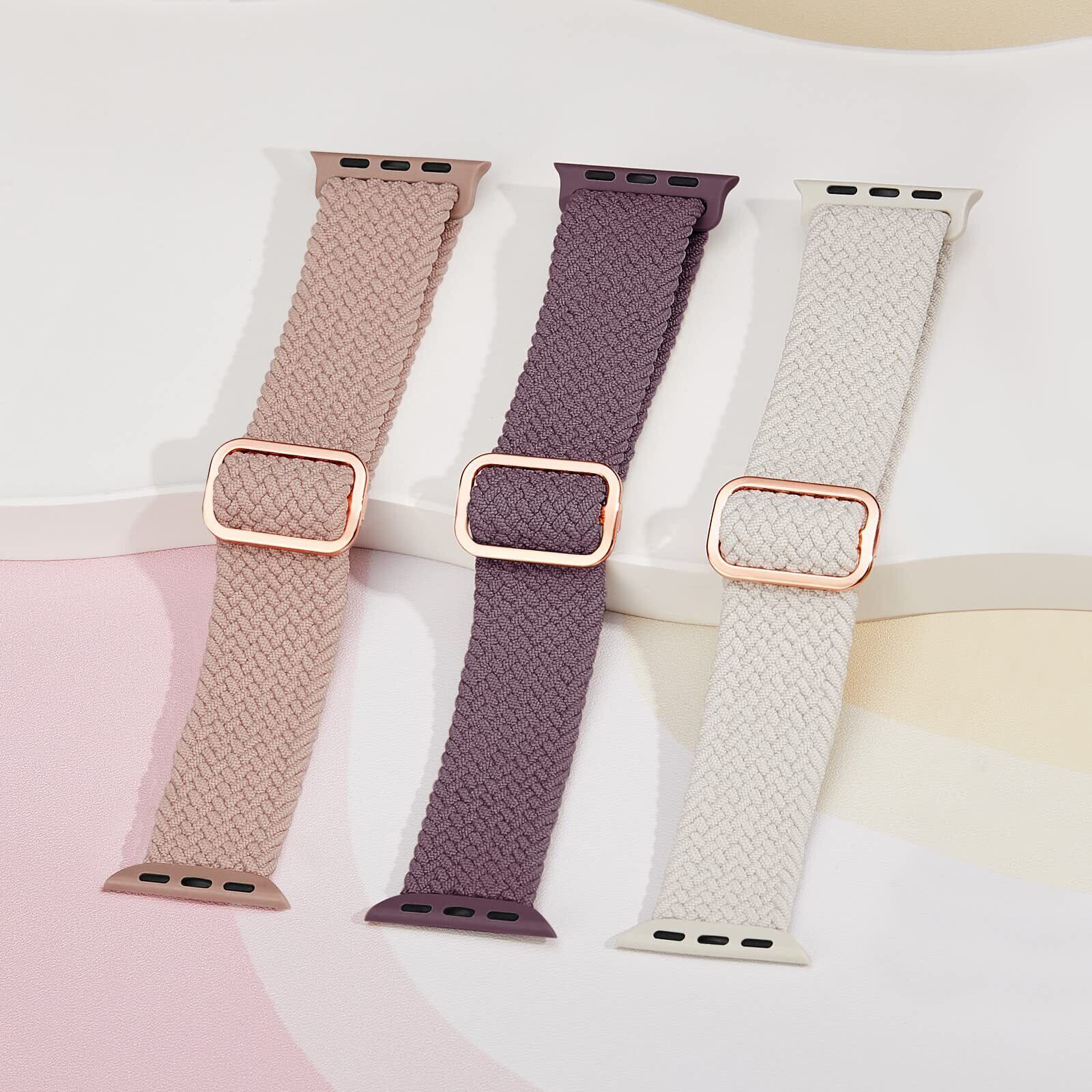 【3枚入り】Suitisbest コンパチブル アップルウォッチ バンド 42mm 41mm 40mm 38mm 編み込み Apple Watch ナイロンバンド 伸縮性 アップルウォッチ スポーツバンド Series 10 9 8 7 6 5 4 3 2 1 SEに対応 長さ無段階調整 柔軟 通気 防汗 ダークピンク スターライト グレーパープル